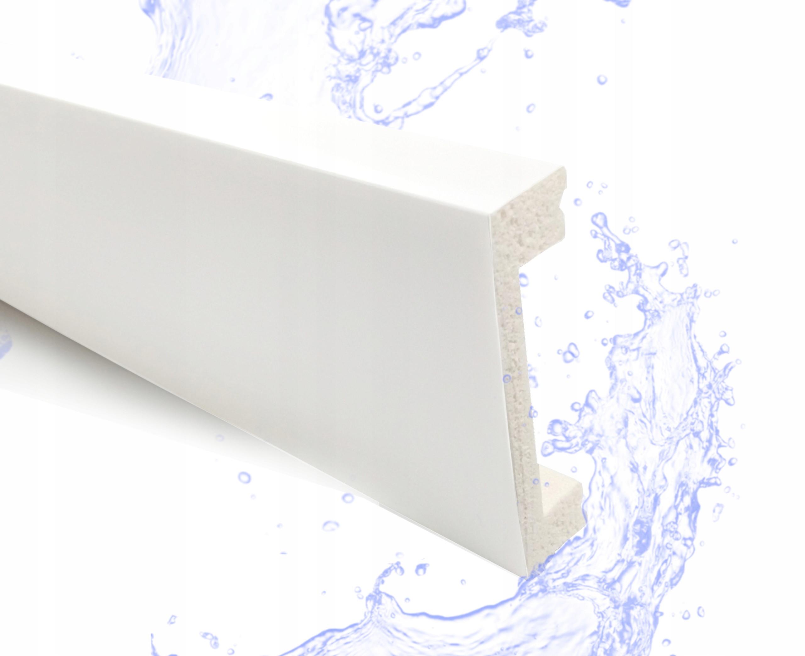 В отличие от полос МДФ, доступных на рынке, полосы из полистирола полностью устойчивы к воде.