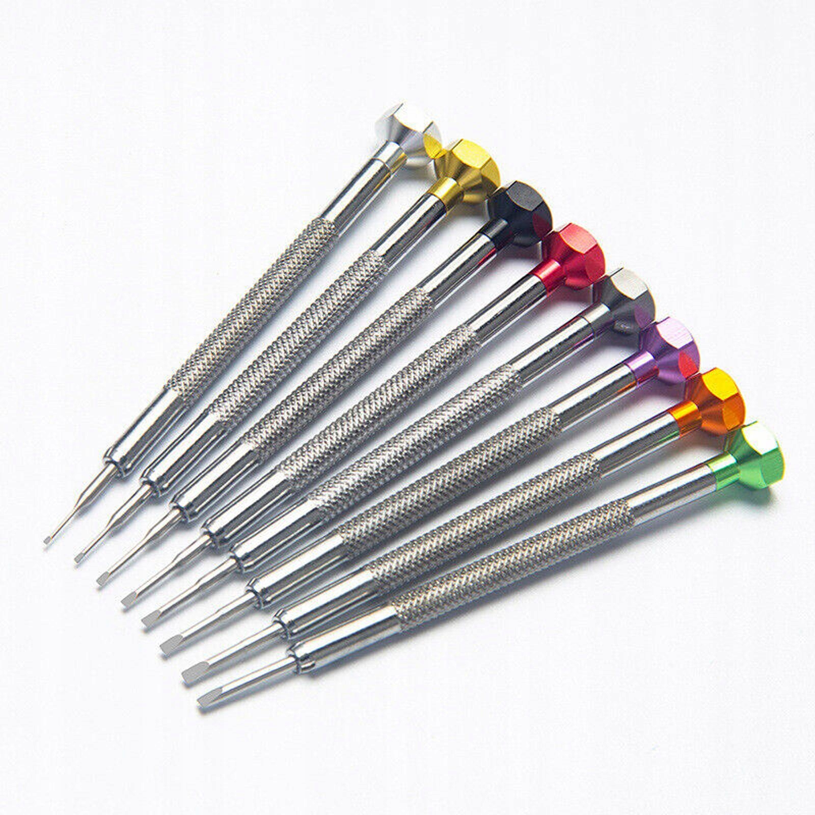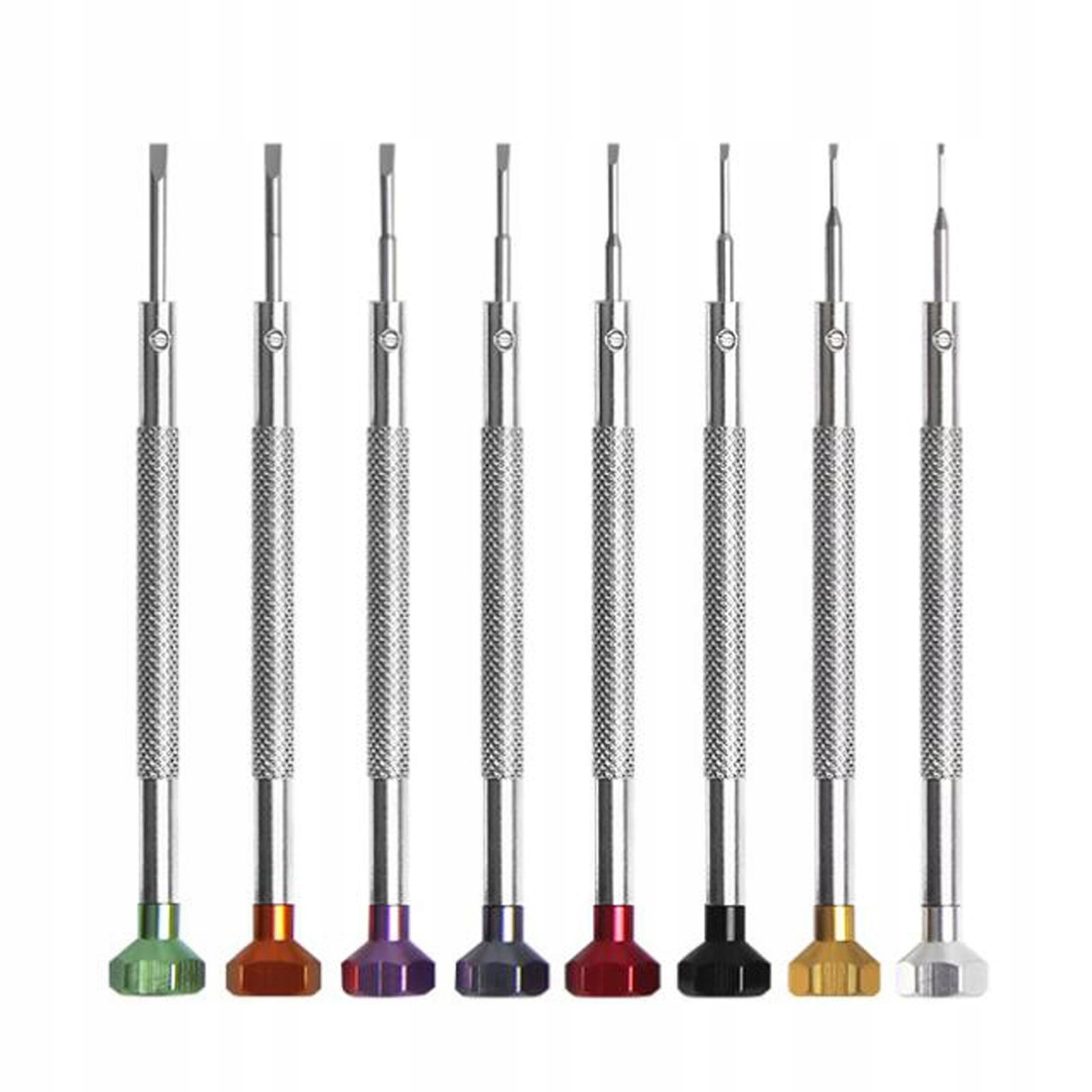 [Тип] Набор содержит 8 разноцветных плоских отверток, специально разработанных для ремонта часов. 0,8 мм, 1,0 мм, 1,2 мм, 1,4 мм, 1,6 мм, 1,8 мм и 2,0 мм. Очки