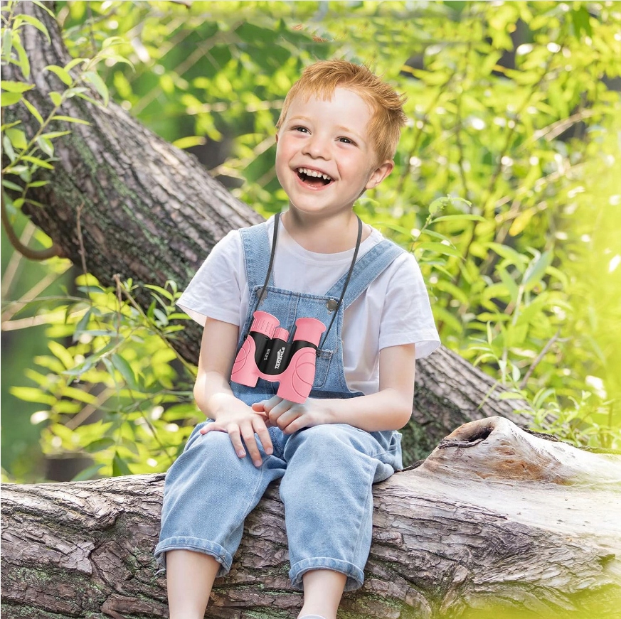 - В комплект входит специальный чехол и шейный ремешок. Шейный ремешок можно повесить прямо на шею ребенка, чтобы его руки были свободны и могли бегать и прыгать, не опасаясь падения бинокля. Когда бинокль не используется, он защищает бинокль от царапин и легко помещается в рюкзак или сумочку. Собираетесь ли вы на выходные, в отпуск или просто на день в парк, вы можете взять его с собой в путешествие.