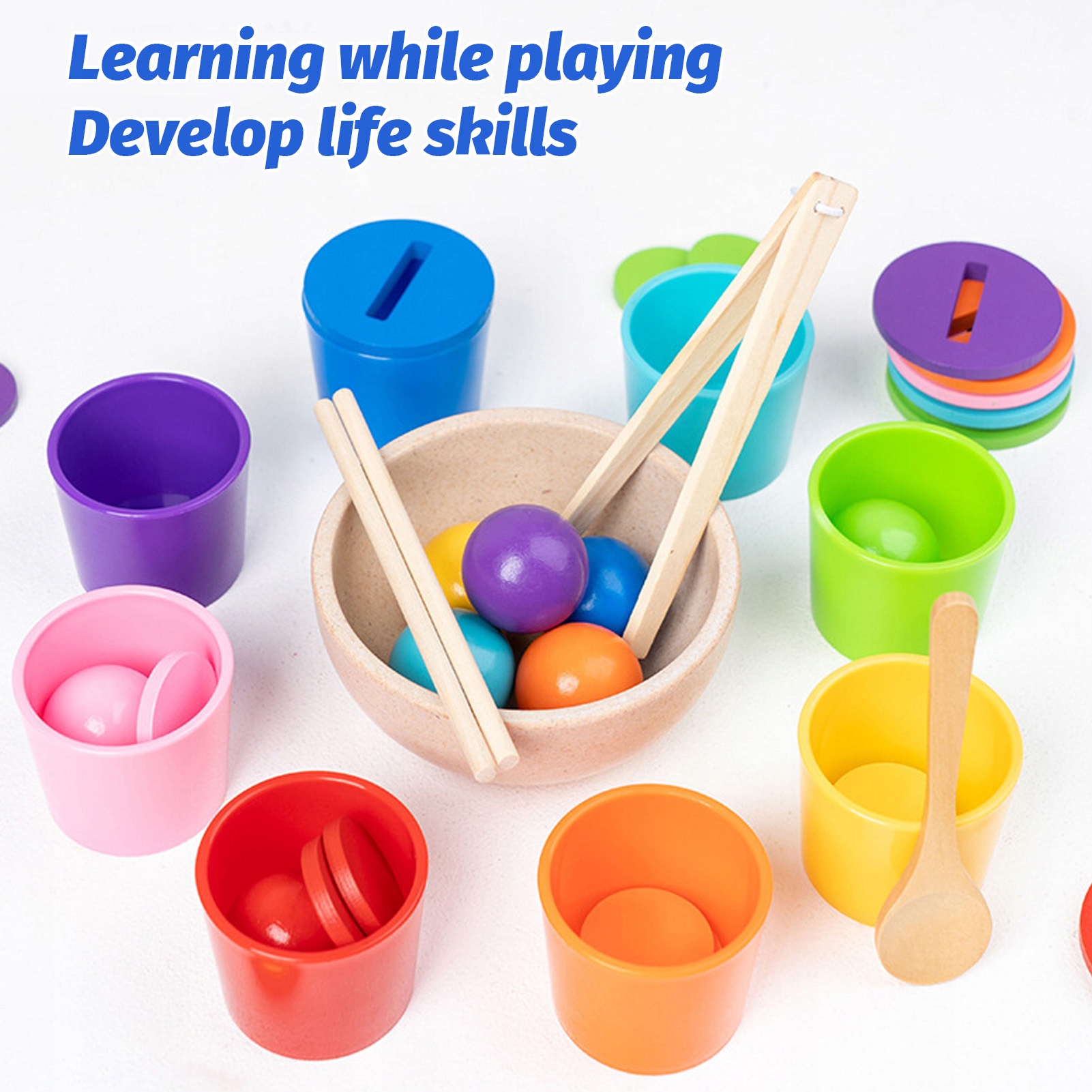 4. Многофункциональность: деревянные чашки для сортировки цветов представляют собой многофункциональную конструкцию, которую можно использовать для чередующихся игр и математического просвещения. Этот многофункциональный дизайн побуждает детей творчески играть.