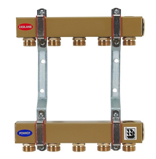 - Комплектация: 2 разъема, 2 распределительных балки, 2 латунных заглушки 1 дюйм, латунные ниппели 3/4 дюйма с наружной резьбой.