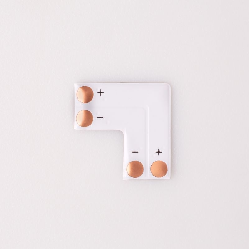 Светодиодный разъем шириной 8 мм и угловой L-образной формой предназначен для использования со светодиодными лентами Mono. Он обеспечивает простое и прочное соединение двух кусков ленты, обеспечивая плавное освещение в любом направлении. Степень герметичности IP20 обеспечивает защиту от пыли и других загрязнений, однако рекомендуется избегать прямого контакта с водой.