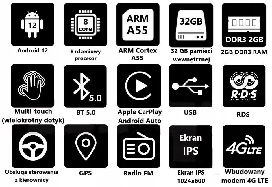 - Операционная система Android 12. Плей Маркет установлен. Возможность установки любого приложения из маркета или из другого источника. Будь то AutoMapa, Yanosik, Waze, Google Maps, Sygic или Skype, Facebook, Instagram или даже игры, без проблем.