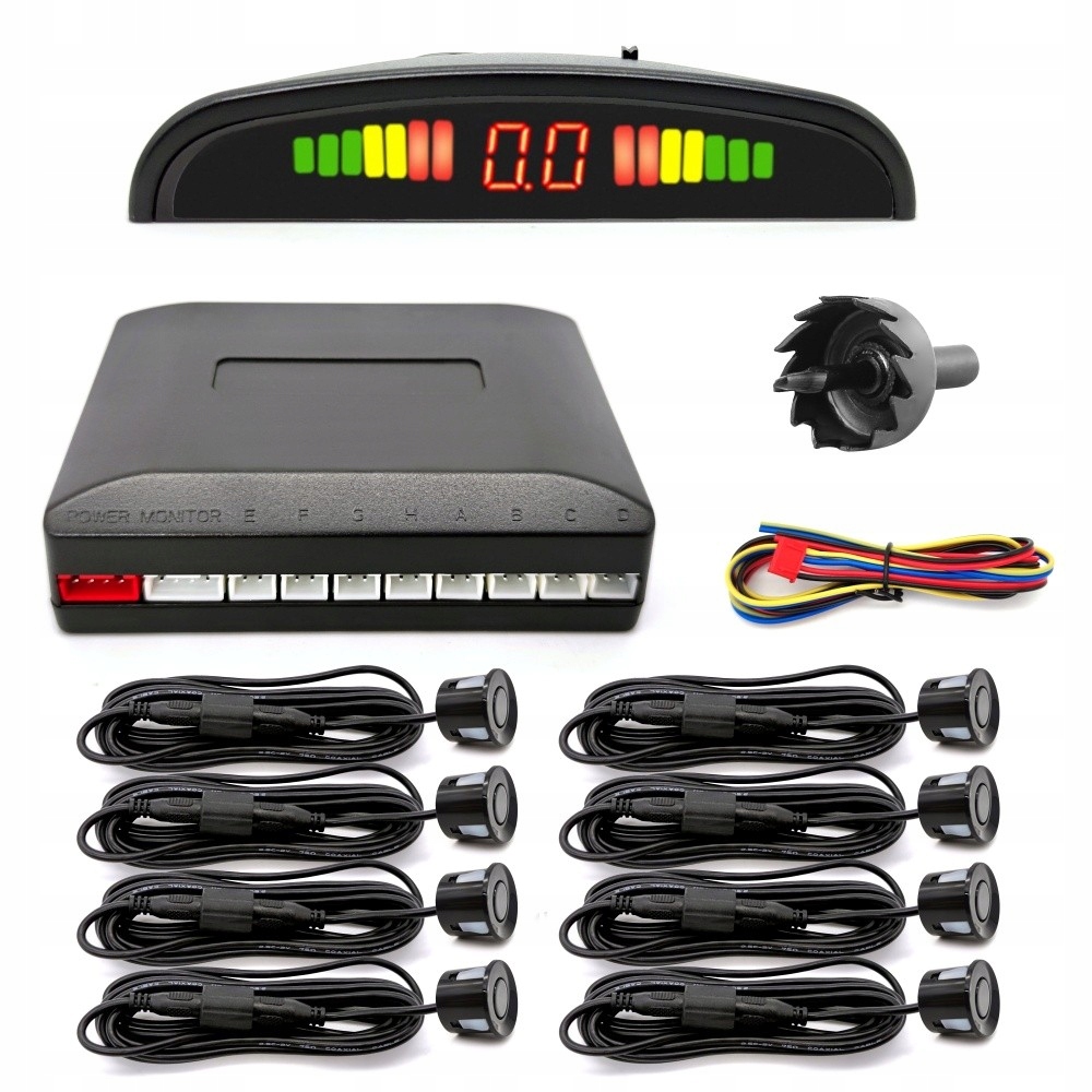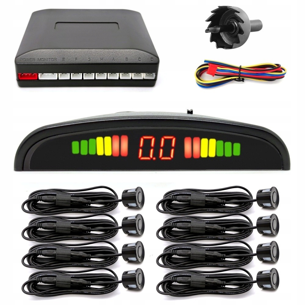 8 датчиков парковки с водонепроницаемыми разъемами, блок управления, дисплей с зуммером - комплект