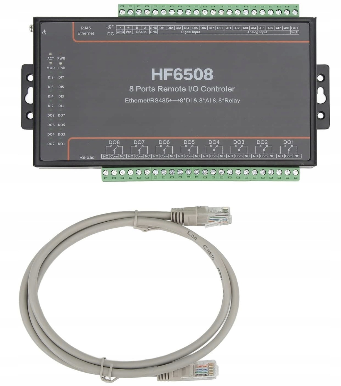 Сетевой релейный контроллер с последовательным кабелем, плата сбора данных RS485 Ethernet 5–40 В постоянного тока, многоканальный переключатель управления Последовательный порт для шлюза Modbus для RTU HF6508 — 8 портов