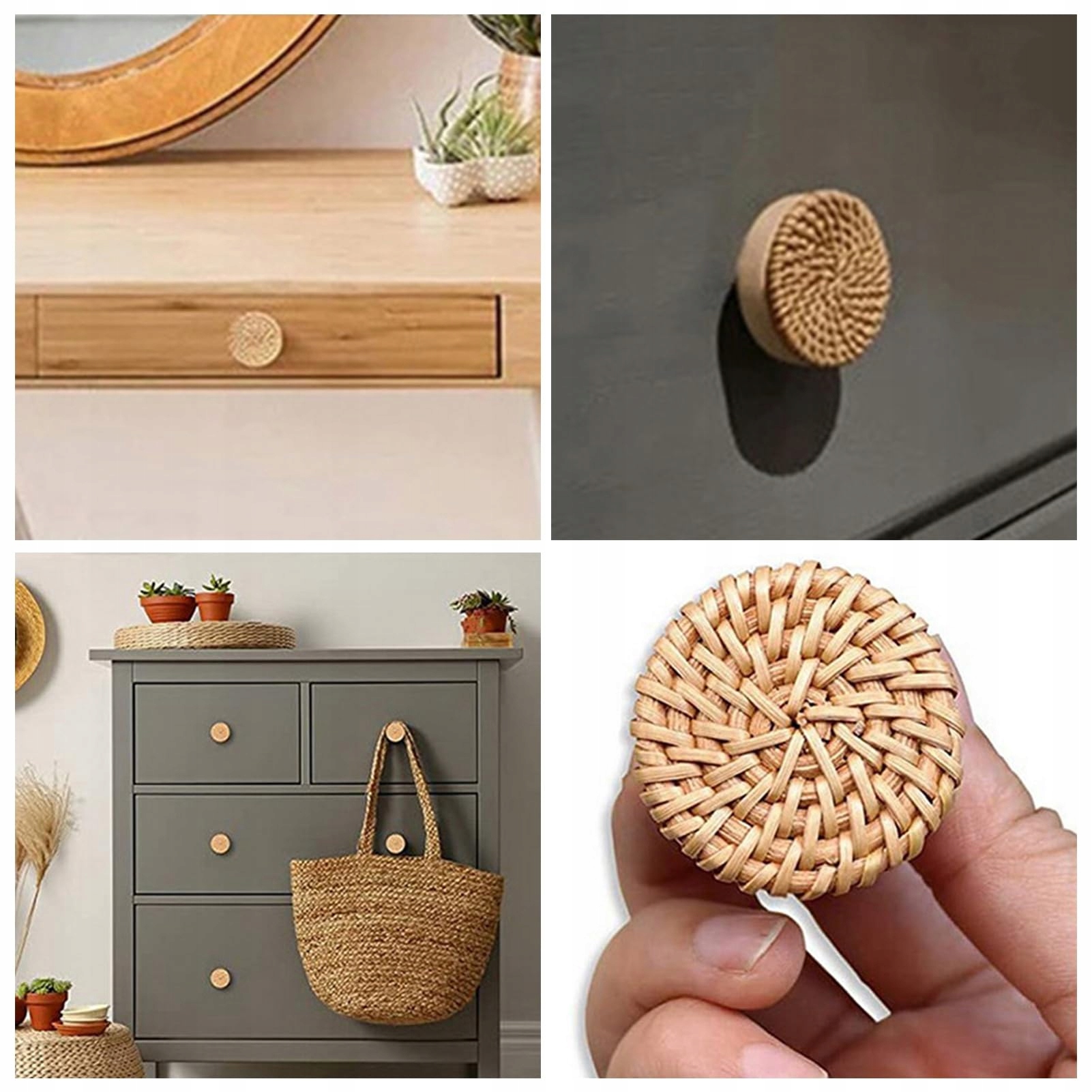 ШИК-ДИЗАЙН РУЧНОЙ РАБОТЫ: Ручки шкафа в стиле бохо изготовлены из дерева и натурального ротанга. Чистый ротанг, сотканный вручную, сохраняет естественный стиль и дополняет древесину, придавая вашей мебели самый популярный сегодня деревенский стиль.