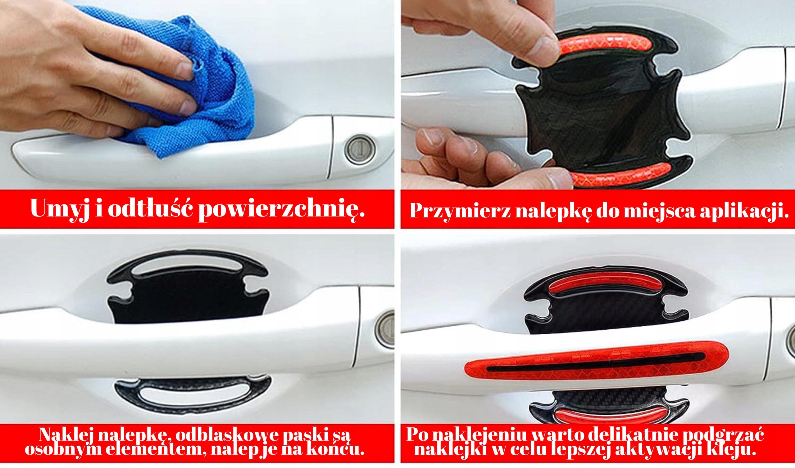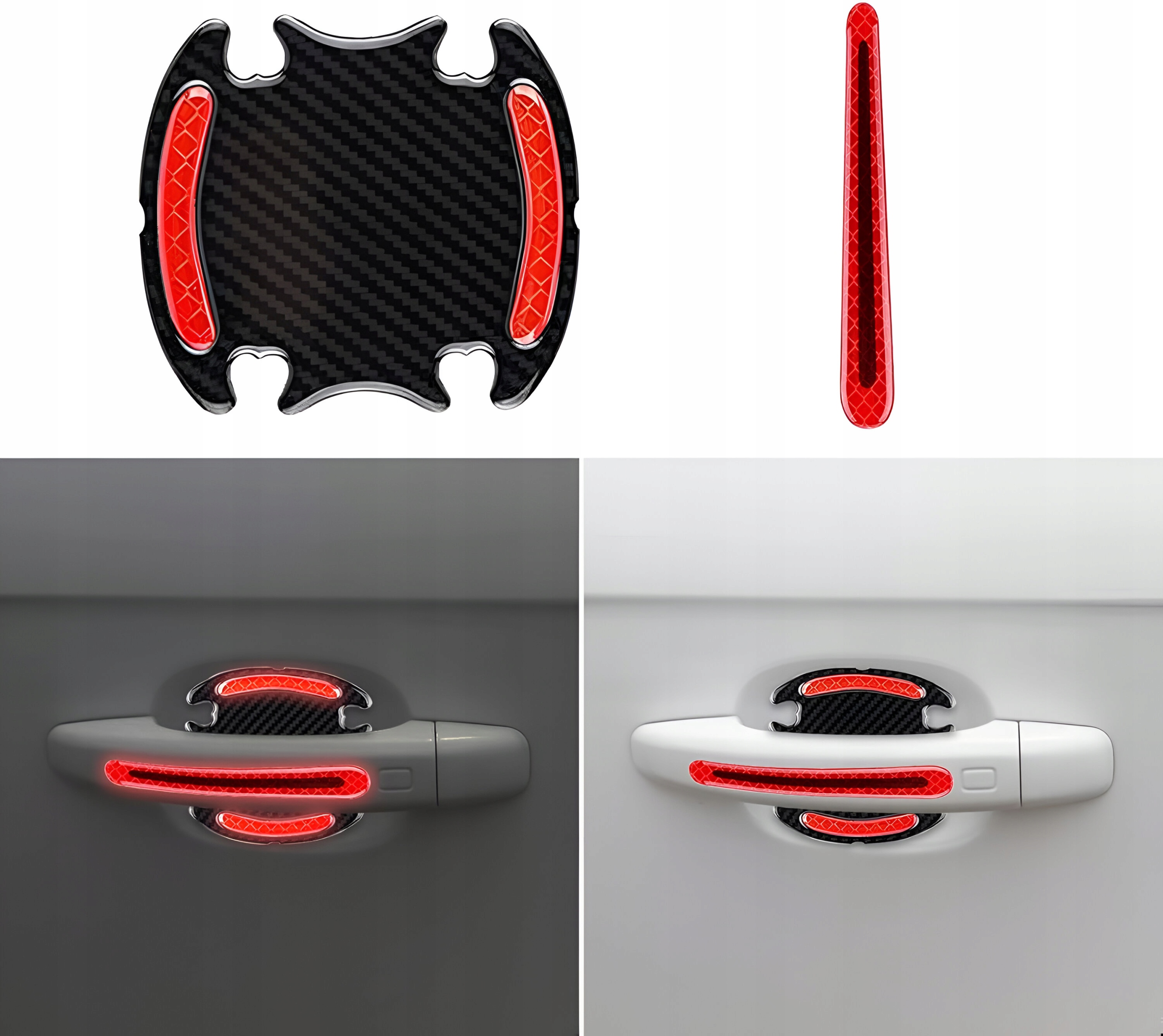 Набор наших защитных наклеек для дверных ручек – идеальный способ не только для защиты краски от царапин или покрытия существующих, а также для обеспечения видимости вашего автомобиля в темное время суток.