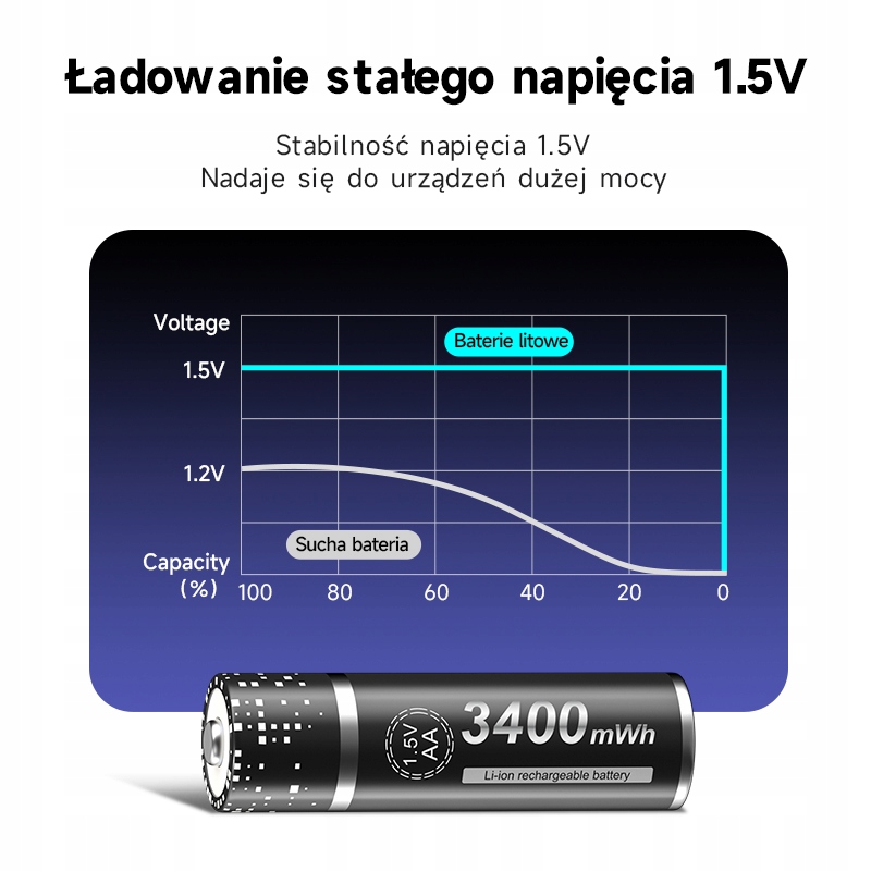 Тип: литий-ионный аккумулятор типа АА, 1,5 В