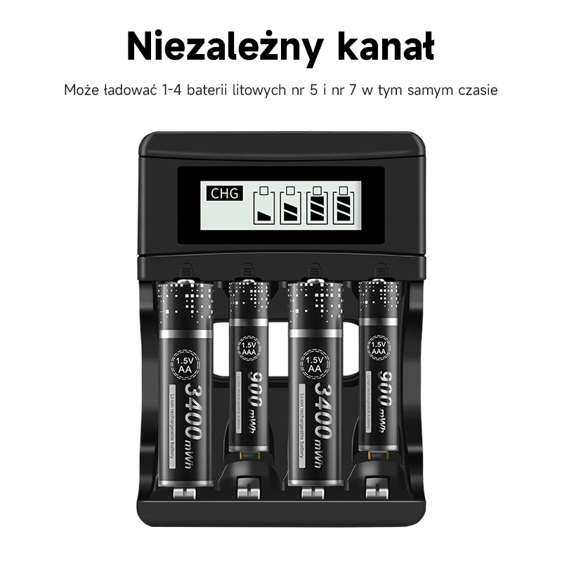 <р>1. Это зарядное устройство может заряжать 1–4 литий-ионных аккумулятора типа АА/ААА напряжением 1,5 В. Оно оснащено ЖК-дисплеем для отображения процента заряда. <р>2. Зарядка под контролем IC. - Интеллектуально отключите режим быстрой зарядки, затем переключитесь на капельную зарядку, обеспечьте полную зарядку и одновременно защитите от перезарядки. ЖК-дисплей включится и отобразит цвет фона в течение 2 секунд при подключении к источнику питания, а затем выключится.Примечание:
