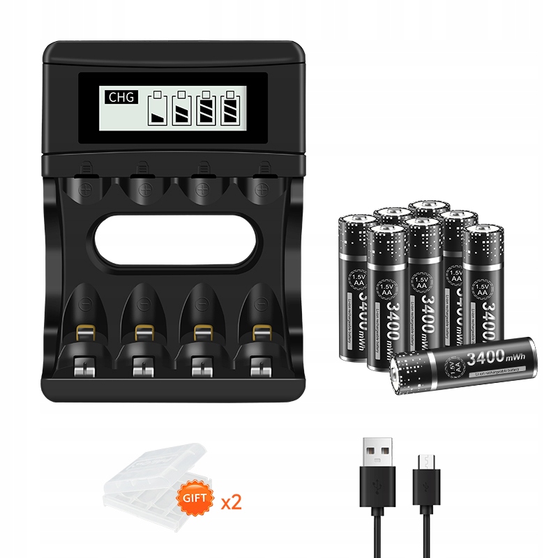 8 шт. 1,5 В AA R6 літій-іонна акумуляторна батарея 3400 мВт·год + розумний зарядний пристрій для РК-дисплея