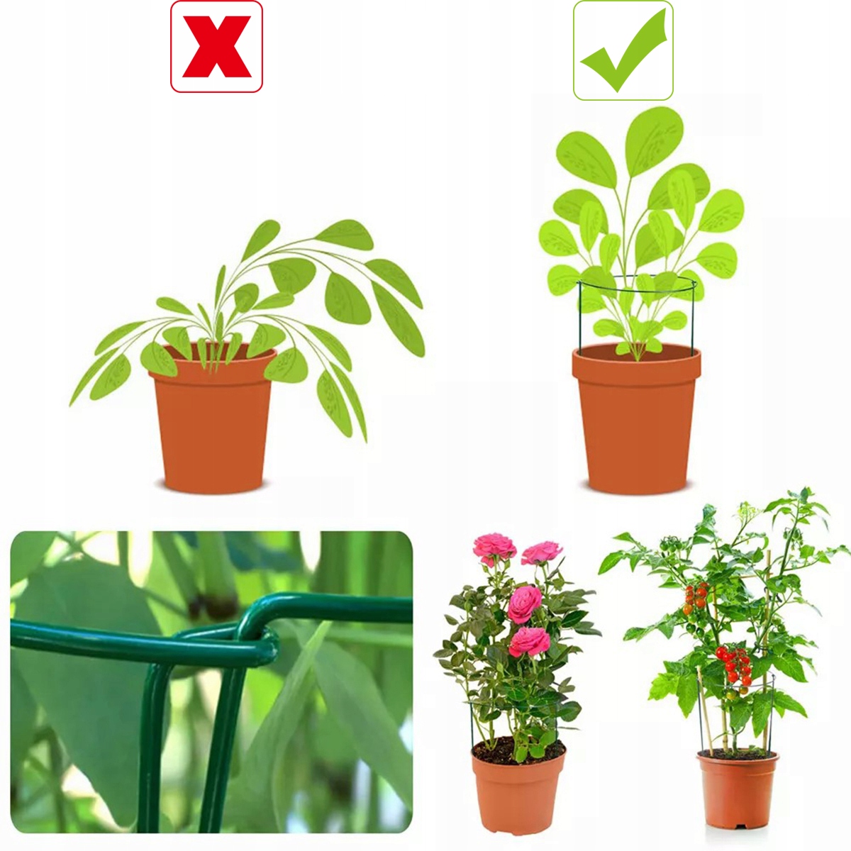 Эти опорные стойки для растений идеально окружают и поддерживают растения, не допускайте падения или поломки растения, направляйте его стебель в правильное положение и защищайте растение от сильного ветра, дождя и снега.