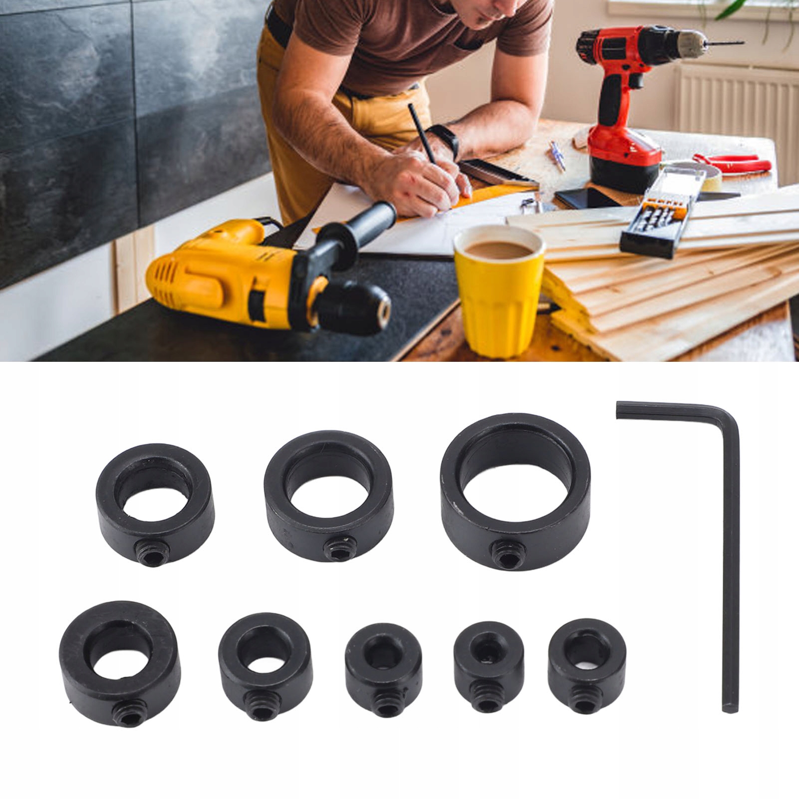 5. [Простота в использовании] Просто прикрепите стопорное кольцо к сверлу и отрегулируйте желаемую глубину сверления. Этот набор – удобный инструмент как для новичков, так и для опытных плотников.