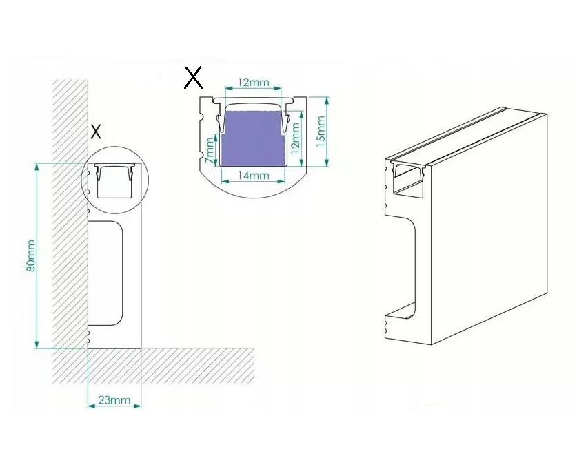 Черный профиль освещения (RAL7021) с черным диффузором имеет достаточно места для размещения стандартной светодиодной полосы (14x12 мм). Это непрозрачное, поэтому не требуется дополнительного использования световой отражающей ленты. Он используется как потолок, стена и профиль плиты
