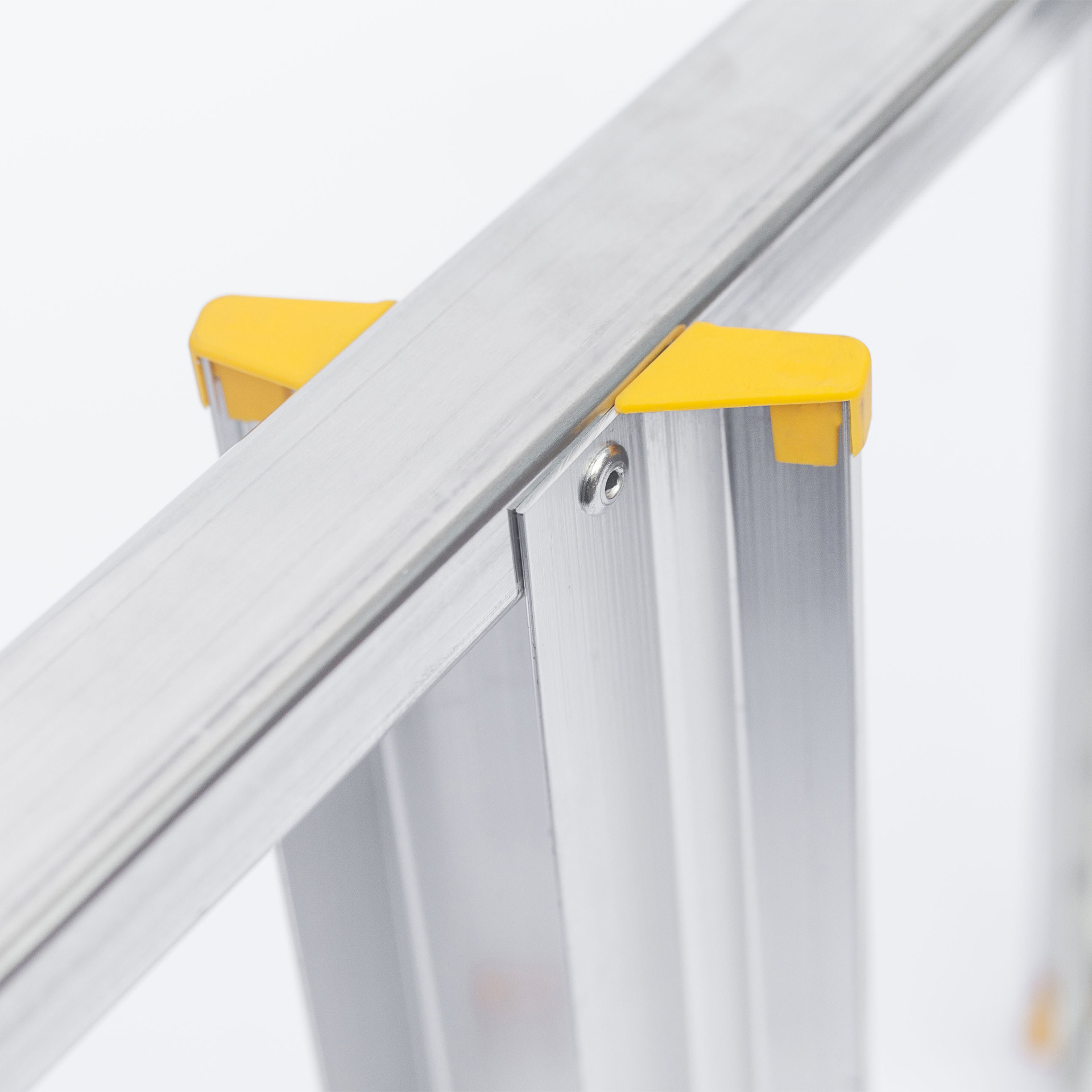 Усиление под платформой гарантирует, что она не прогнется и не сломается под вами — вы будете чувствовать себя в полной безопасности. Более того, после складывания платформа автоматически прячется в лестницу, что упрощает ее хранение.