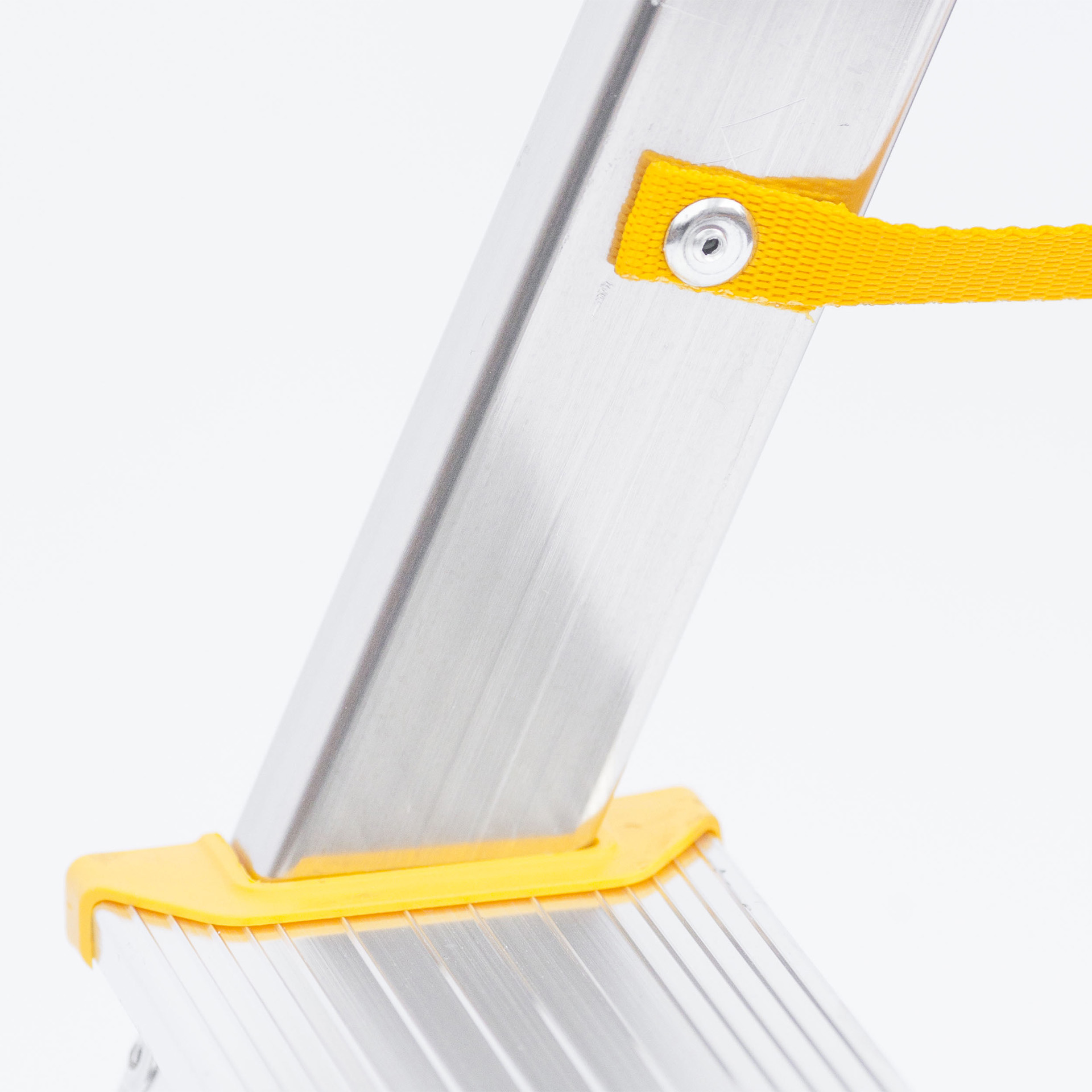 Края ступенек закрыты колпачком, поэтому вы не поцарапаетесь и не взъерошите одежду, поднимаясь и спускаясь по лестнице. Кроме того, лестница оснащена лямками, предотвращающими ее слишком сильное растягивание.