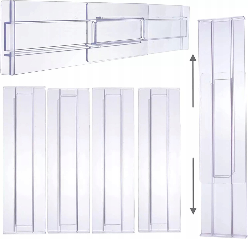 Легкая сборка: быстрая и легкая сборка, без использования инструментов. Просто наклейте с двухпроводительную ленту (включенную) на раздел, сорвал ленту, поместите ее в организатор ящика, установите ее в соответствующее положение, а затем приложите раздел в отсеки. Перегородка будет расти до желаемой длины и будет уверенно придерживаться ящиков.