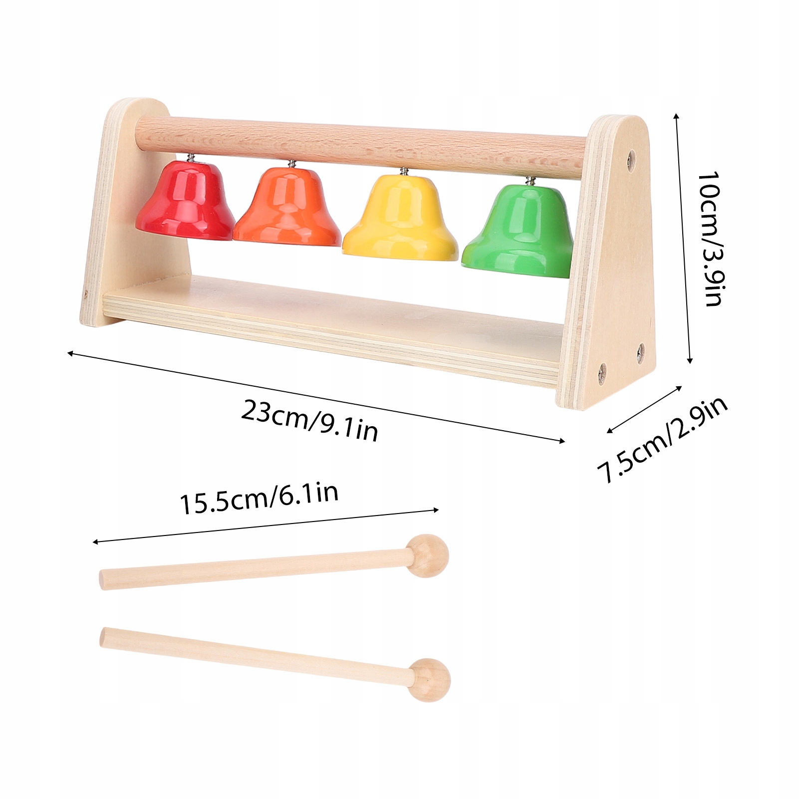 8 Обратите внимание на музыкальное ксилофонное деревянное основание красочные ручные колокольчики с 2 бедрами