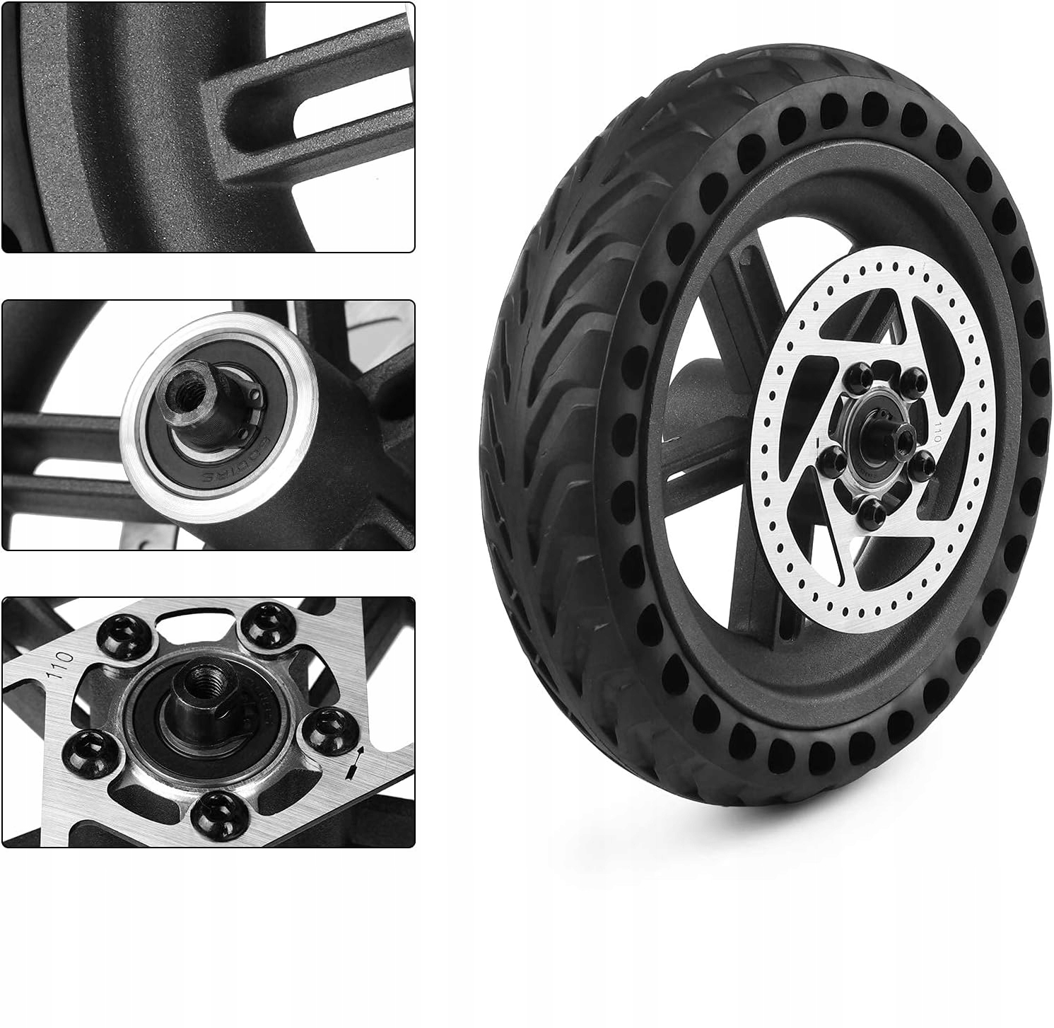🛴🛴 Шины с сотовой структурой: твердое и долговечное, устойчивое к пронзительному колесу в центре безопасности, изготовленных из алюминирования и более прочной, высокой резиновой тирки, которые устойчивы к использованию. Honeycomb Tire поглощает удары и обеспечивает комфорт колеса трубки. Поставляется с уже собранным тормозным диском.