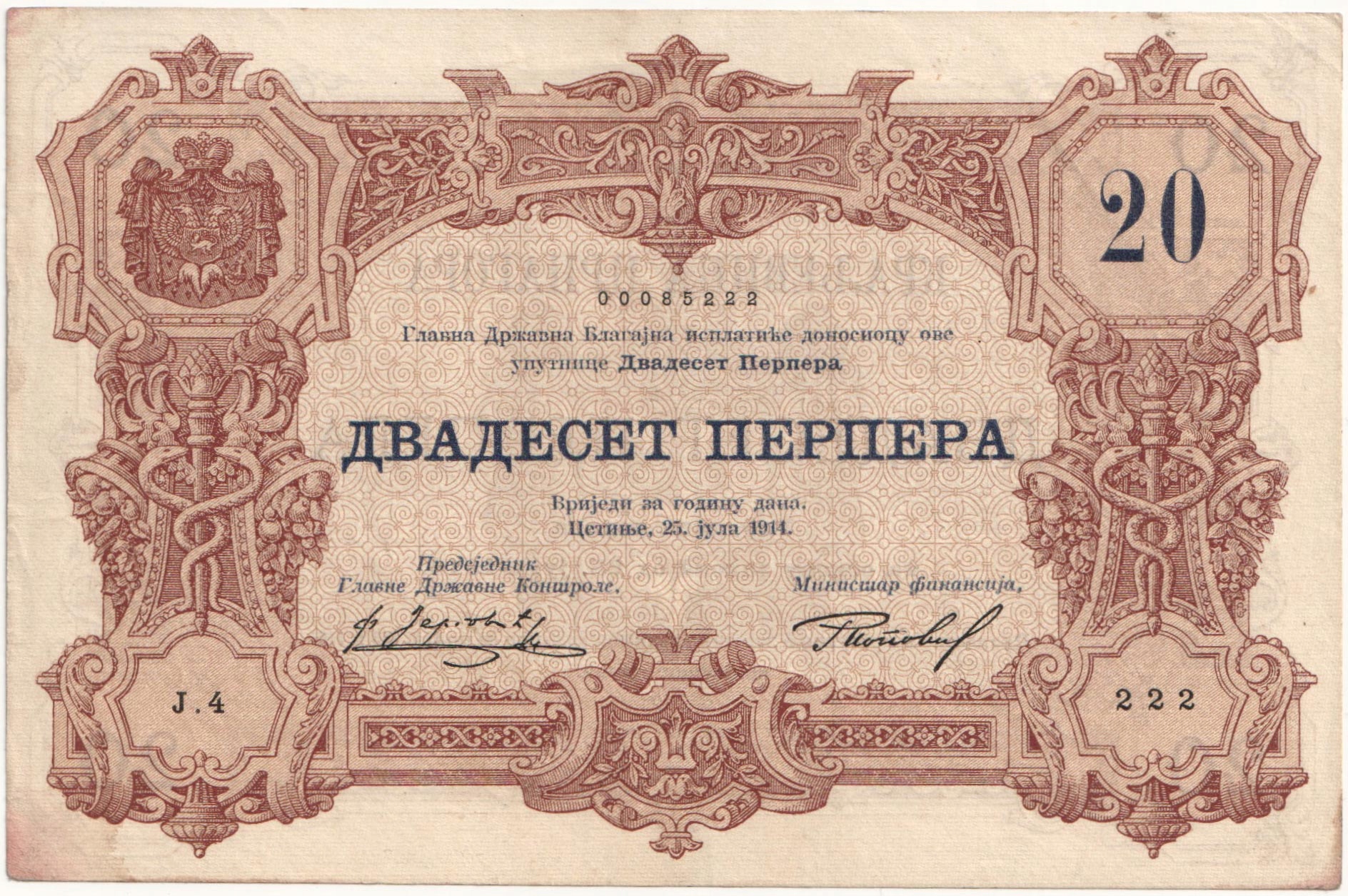 8.db.Чорногорія, 20 Перперів 1914, Р.19, св.2