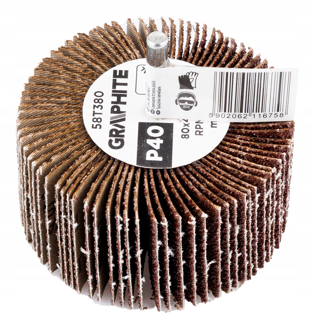 80 x 40 x 6 мм, P40, 58T380 Graphite Sinding Stder имеет размеры 80 × 40 × 6 мм и график p40. Он предназначен для универсального использования, особенно при трудной обработке для достижения мест. Зерно было изготовлено из электрокорунда, а связующее - синтетическая смола. Максимальная скорость вращения, рекомендованная для этого графитового абразива, составляет 8000 об/мин, а рабочая скорость - 35 м/с.