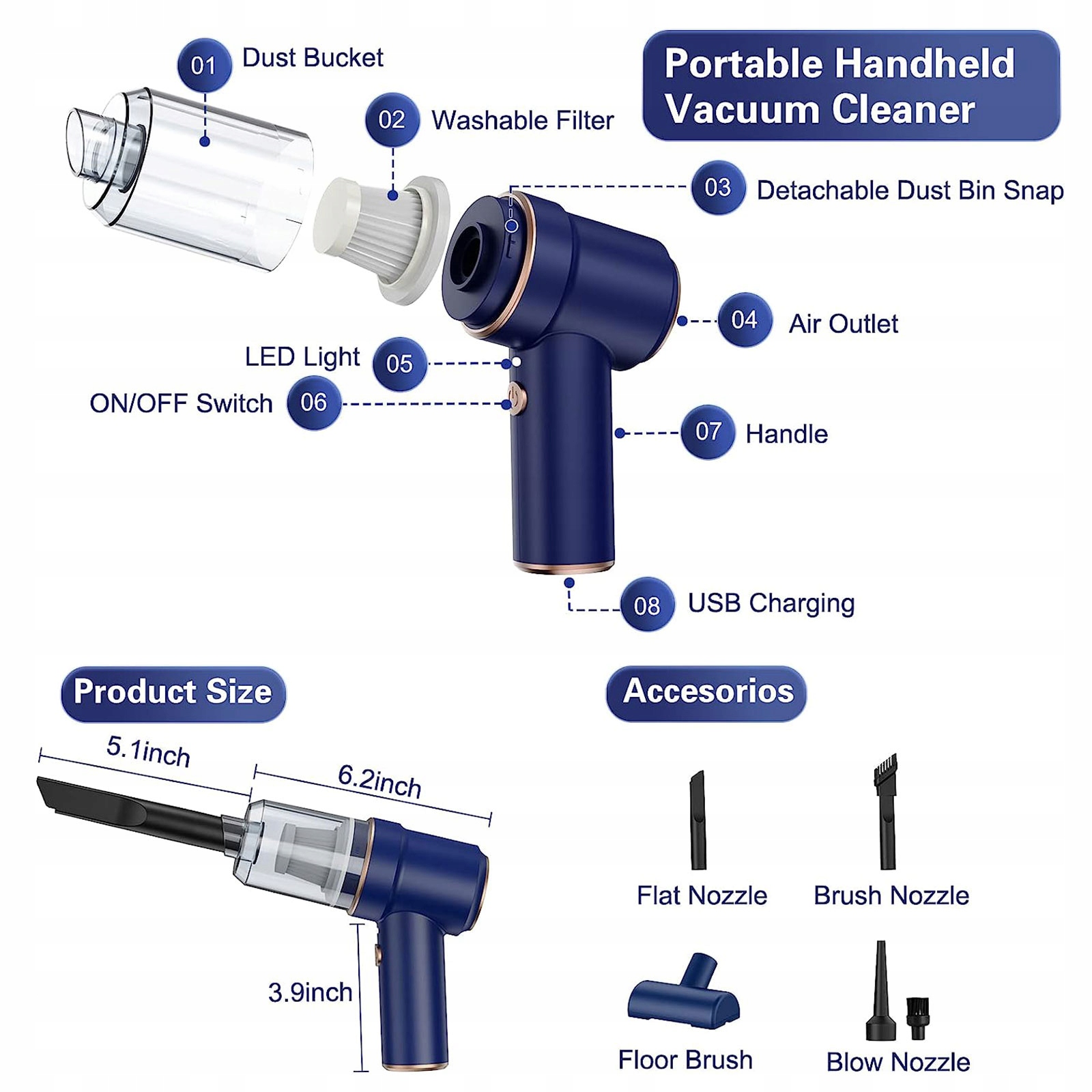⚡ 【Мощный пылесос и пылесос 2 в 1】 Наш пылесос имеет две функции: всасывать или выдувать. С его помощью можно легко удалять грязь, мусор, пыль и другие частицы с поверхностей предметов, а также высасывать самую мелкую, стойкую грязь, скрытую в клавиатурах, углах и щелях. Мощная функция сбора пылесоса гарантирует, что пыли некуда будет скрываться, и все ваши вещи будут выглядеть как новые.