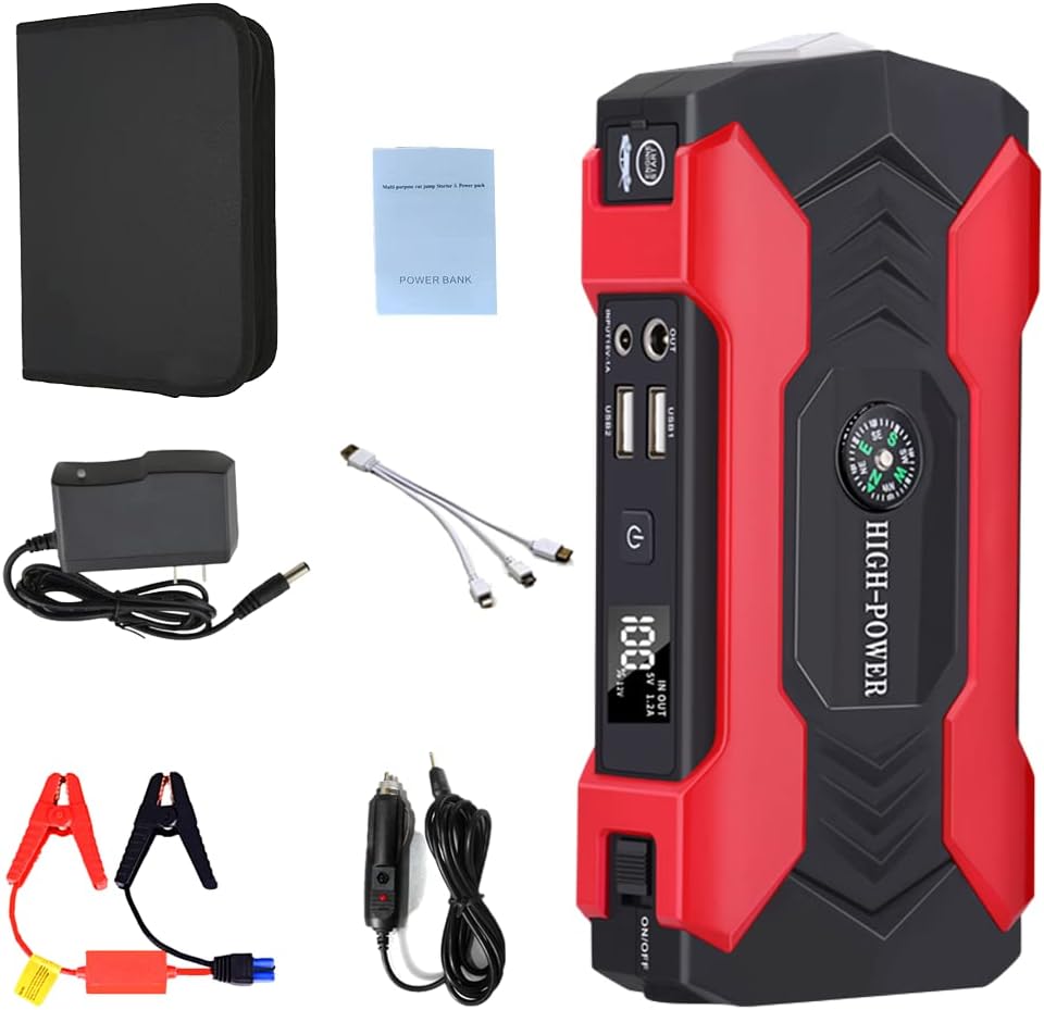 🚗🚗 Процесс зажигания: Красный зажим и черный зажим для автомобильной батареи> Два конца кабелей для банка питания> запустить автомобиль. Заранее проверьте, правильно ли установлено напряжение на устройстве. Обычно он содержится с напряжением 12 против. Благодаря режущим инструментам и аварийным молоткам вы можете быстро покинуть автомобиль в опасных ситуациях. Компас для наружного гида, особенно во время скалолазания или более длинных поездок
