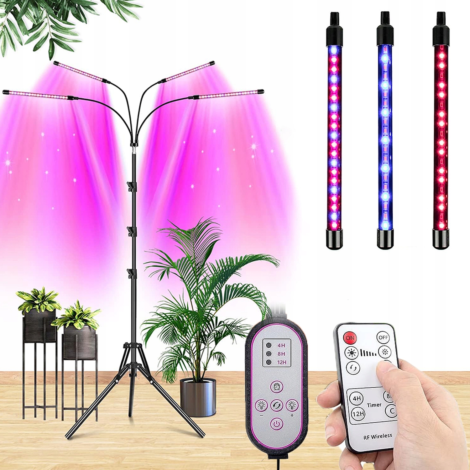 Светодиодная лампа 80x для роста растений 4-Głowicowa 3 цвета 400-700 нм таймер+пульт дистанционного управления