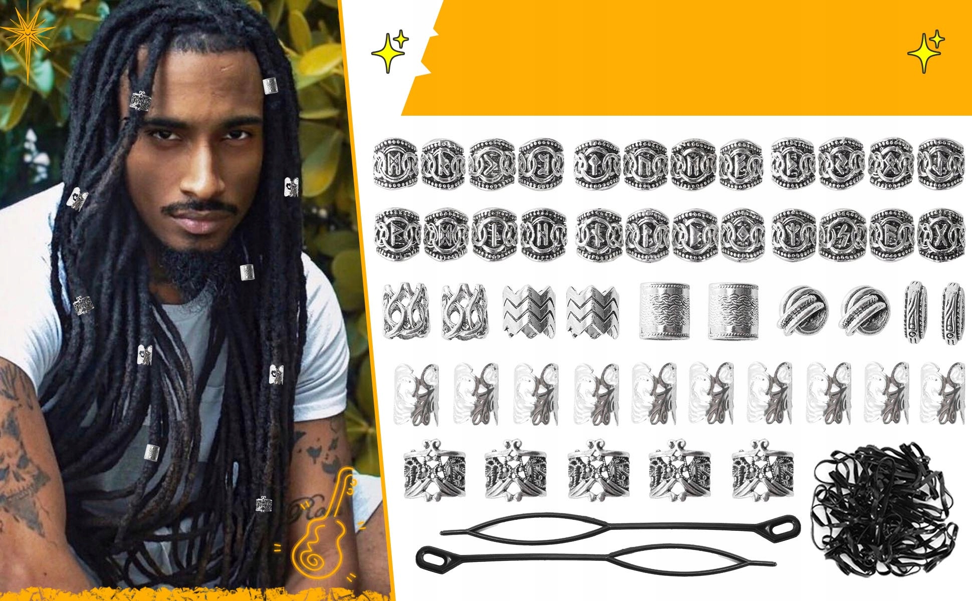 <ул>【Измените свой стиль с элегантностью викингов】Ощутите скандинавский дух с помощью нашего комплексного набора бусин для волос и бороды викингов. Этот набор – не просто аксессуар; это выражение силы и традиций. Благодаря 81 предмету вы сможете создать свой собственный уникальный образ с помощью бус для волос, украшений для бороды и украшений викингов для мужчин.