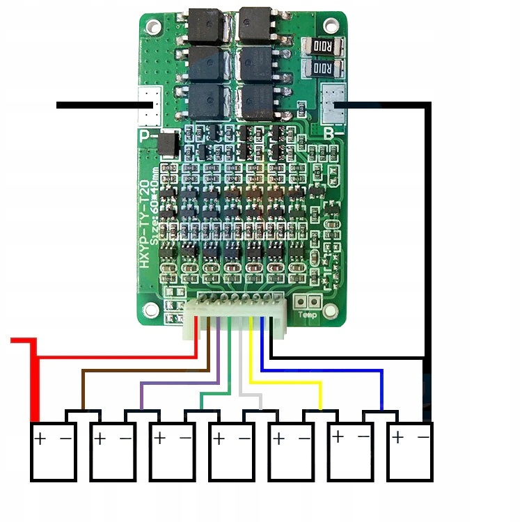 ✔️ Если ток BMS недостаточен, вы можете подключить несколько аккумуляторных блоков к BMSпараллельно.