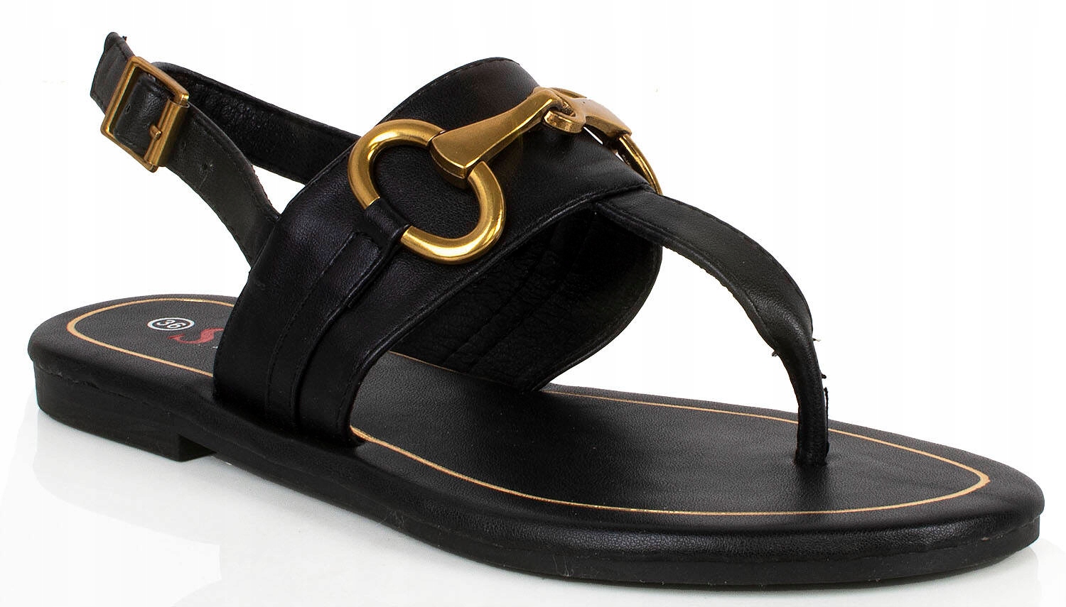 8192 CZARNE DAMSKIE SKÓRZANE KLAPKI JAPONKI OZDOBA 39