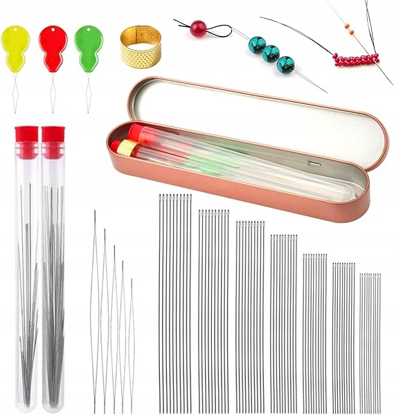 82 ИГЛЫ ДЛЯ БИСЕРИРОВАНИЯ, 5 РАЗМЕРОВ, ДЛИННАЯ НЕРЖАВЕЮЩАЯ СТАЛЬ, С НИТКОЙ