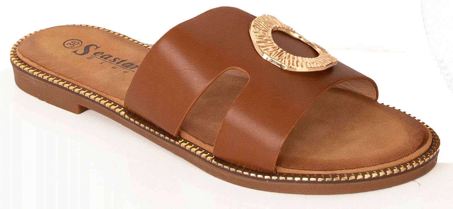 8265 CAMEL SKÓRZANE ELEGANCKIE KLAPKI DAMSKIE OZDOBA 39