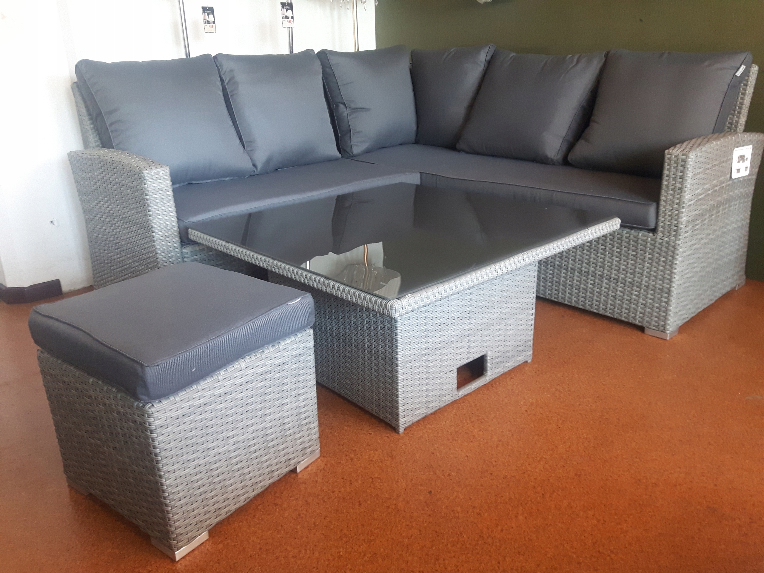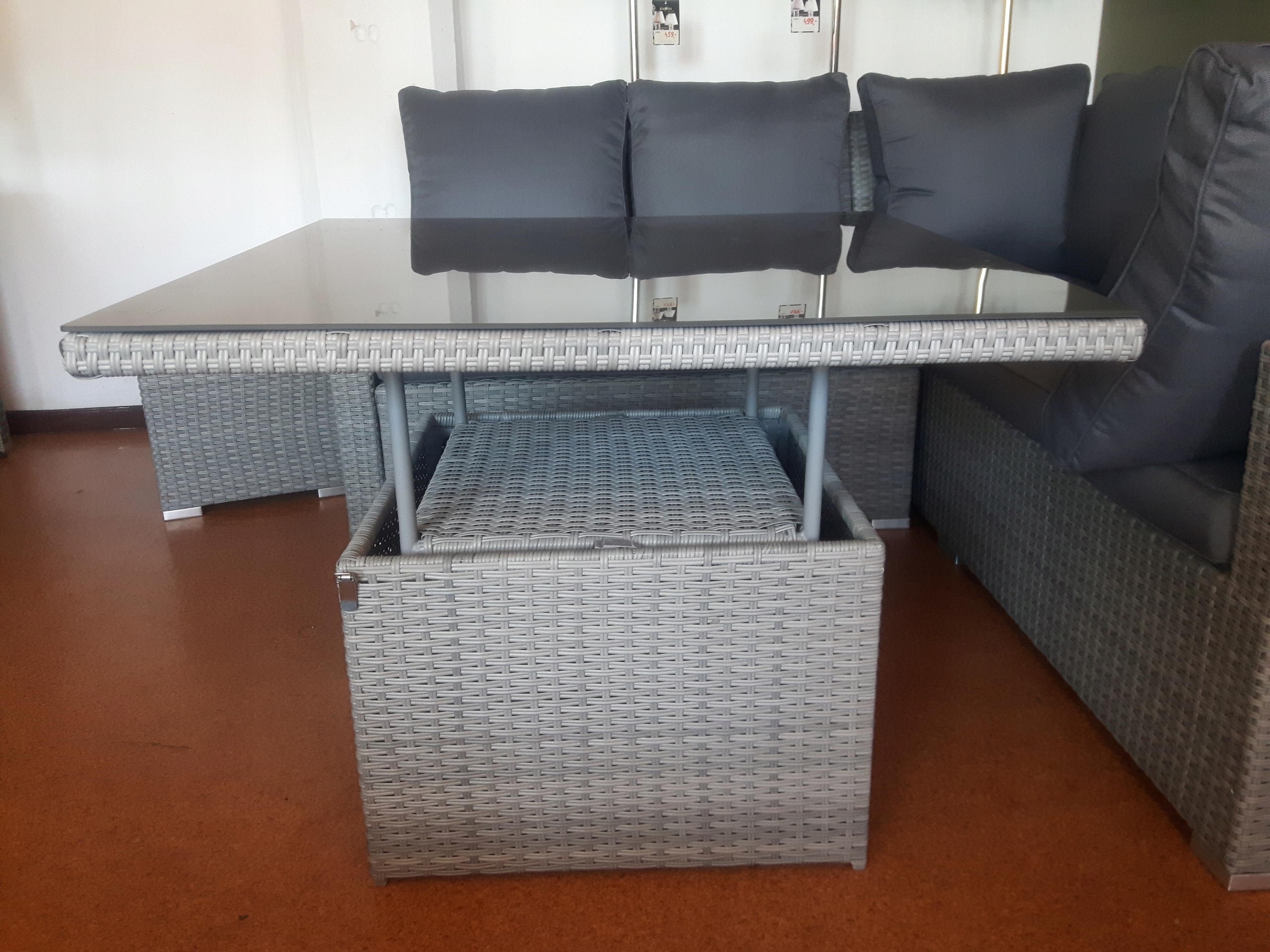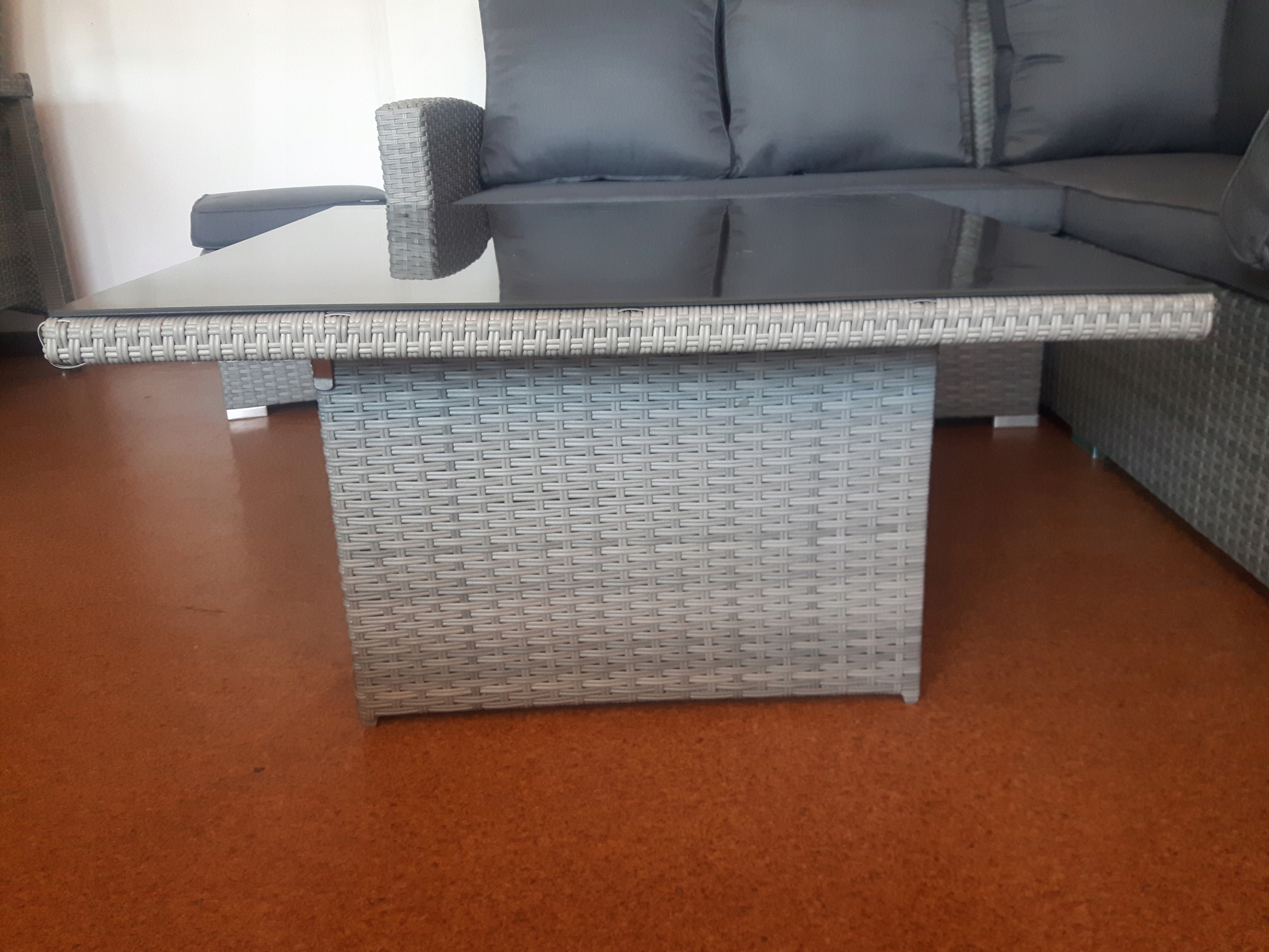 С помощью садового уголка из черного полиротанга вы превратите свое открытое пространство в стильное место для отдыха и расслабления. Прочная алюминиевая конструкция и устойчивые к атмосферным воздействиям волокна ротанга делают мебель очень красиво смотреться на террасе под беседкой или в саду. Регулируемый стол со стеклянной столешницей служит местом для размещения еды и напитков. Толстые подушки сиденья и спинки гарантируют длительный комфорт. Вечера с семьей, друзьями или соседями станут отличным отдыхом на свежем воздухе.