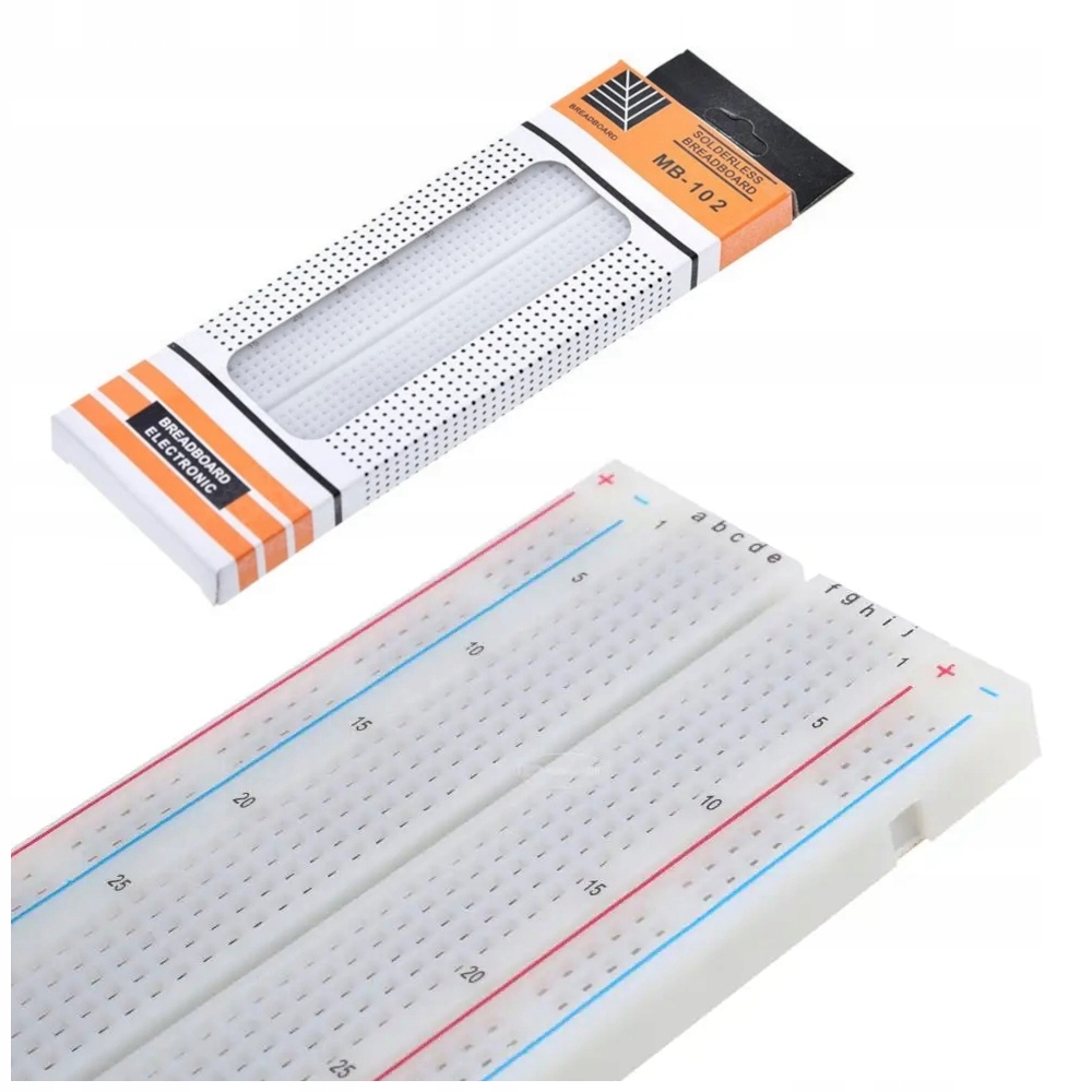 Множество отверстий: Благодаря 830 отверстиям плата MB-102 предлагает достаточно места для подключения различных элементов, таких как датчики, кнопки или диоды. Проектируйте свободно, без ограничений!