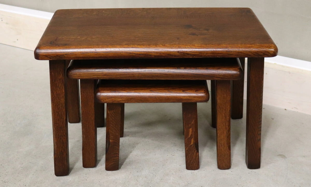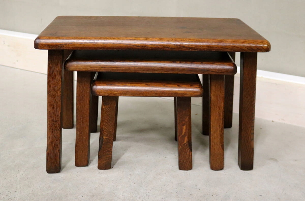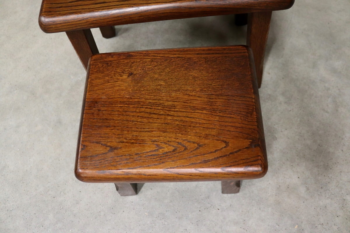 8340 stoliki 3w1, komplet dębowych zydelków
