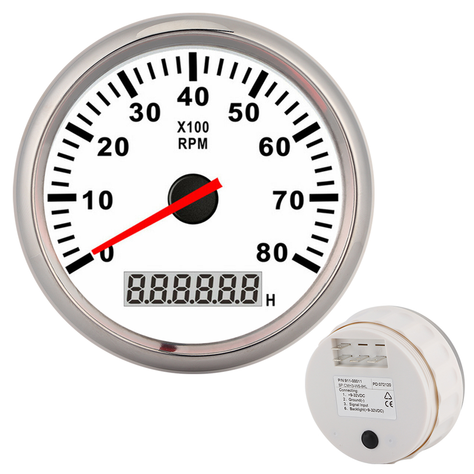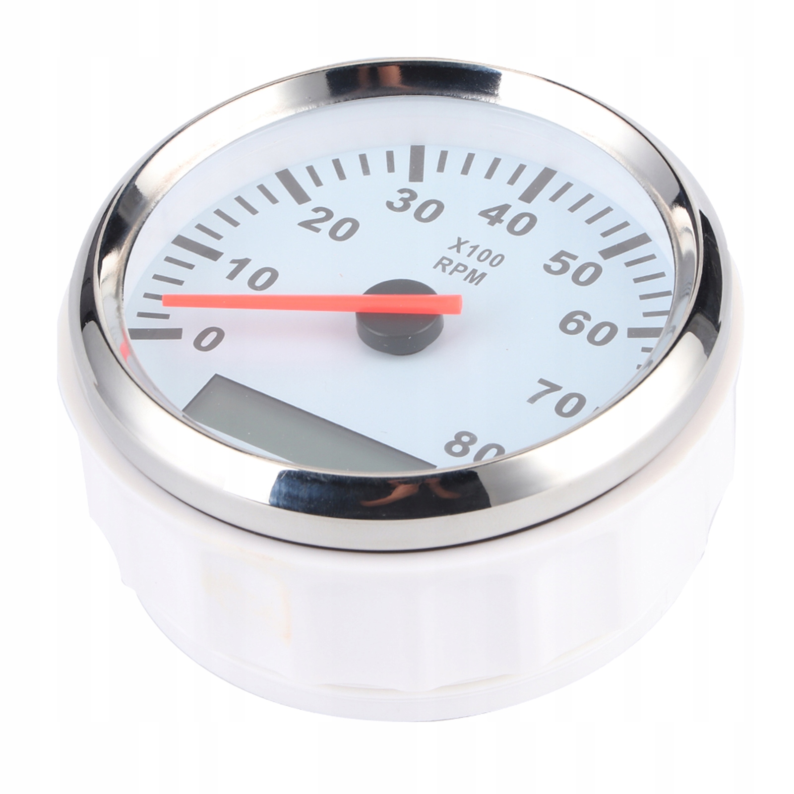 Цифровой тахометр, 85 мм, 8000 об/мин, красный светодиодный индикатор с подсветкой, водонепроницаемый морской счетчик часов для автомобиля, лодки, 12 В/24 В, белый циферблат, серебряная рамка