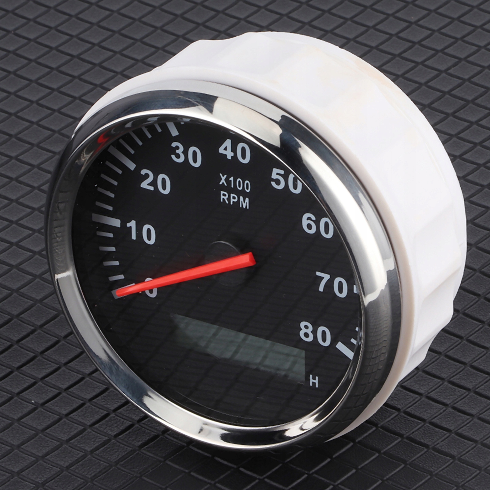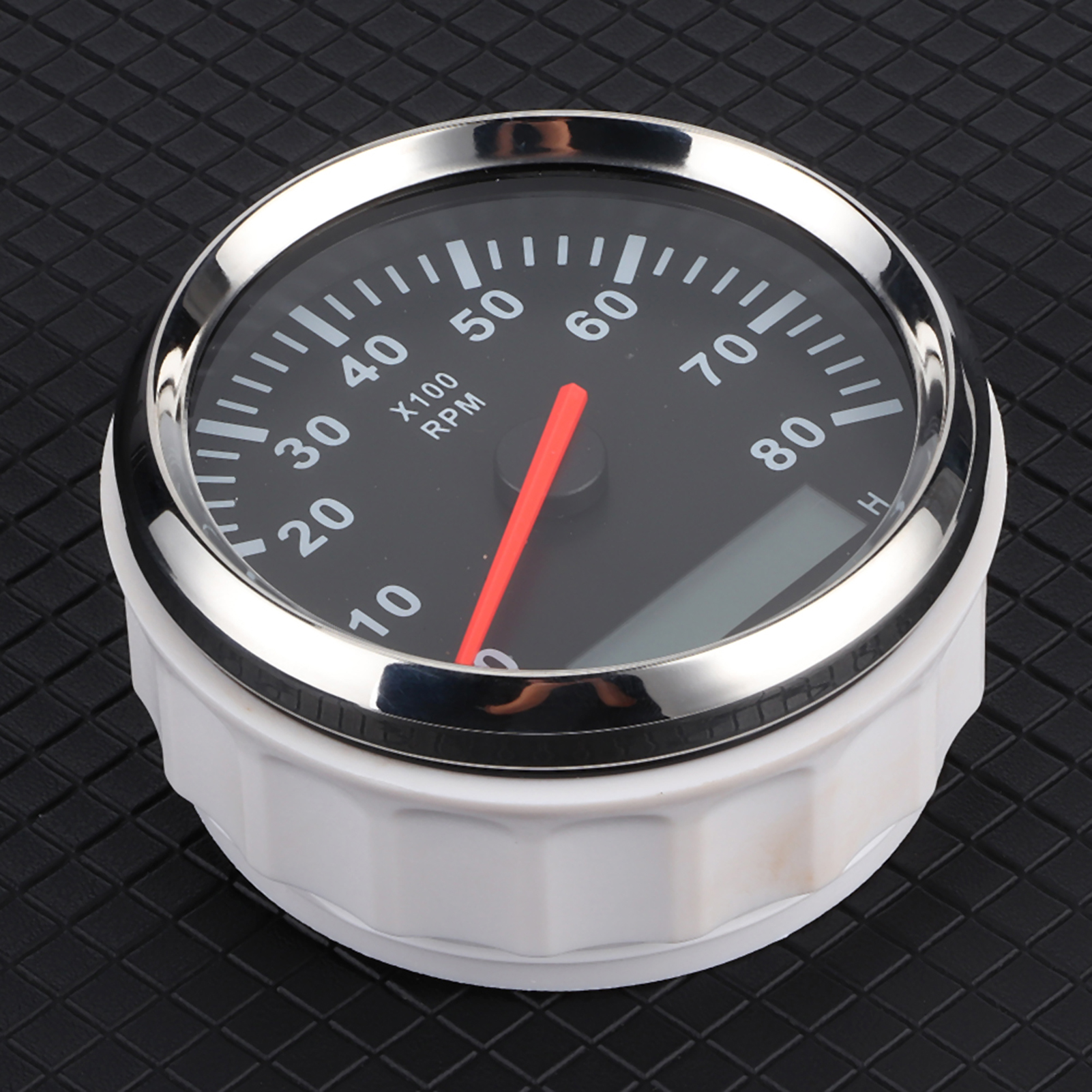 Цифровой манометр 85 мм, тахометр, 8000 об/мин, красный светодиодный индикатор с подсветкой, водонепроницаемый морской счетчик часов для автомобиля, лодки, 12 В/24 В, черный циферблат, серебряная рамка