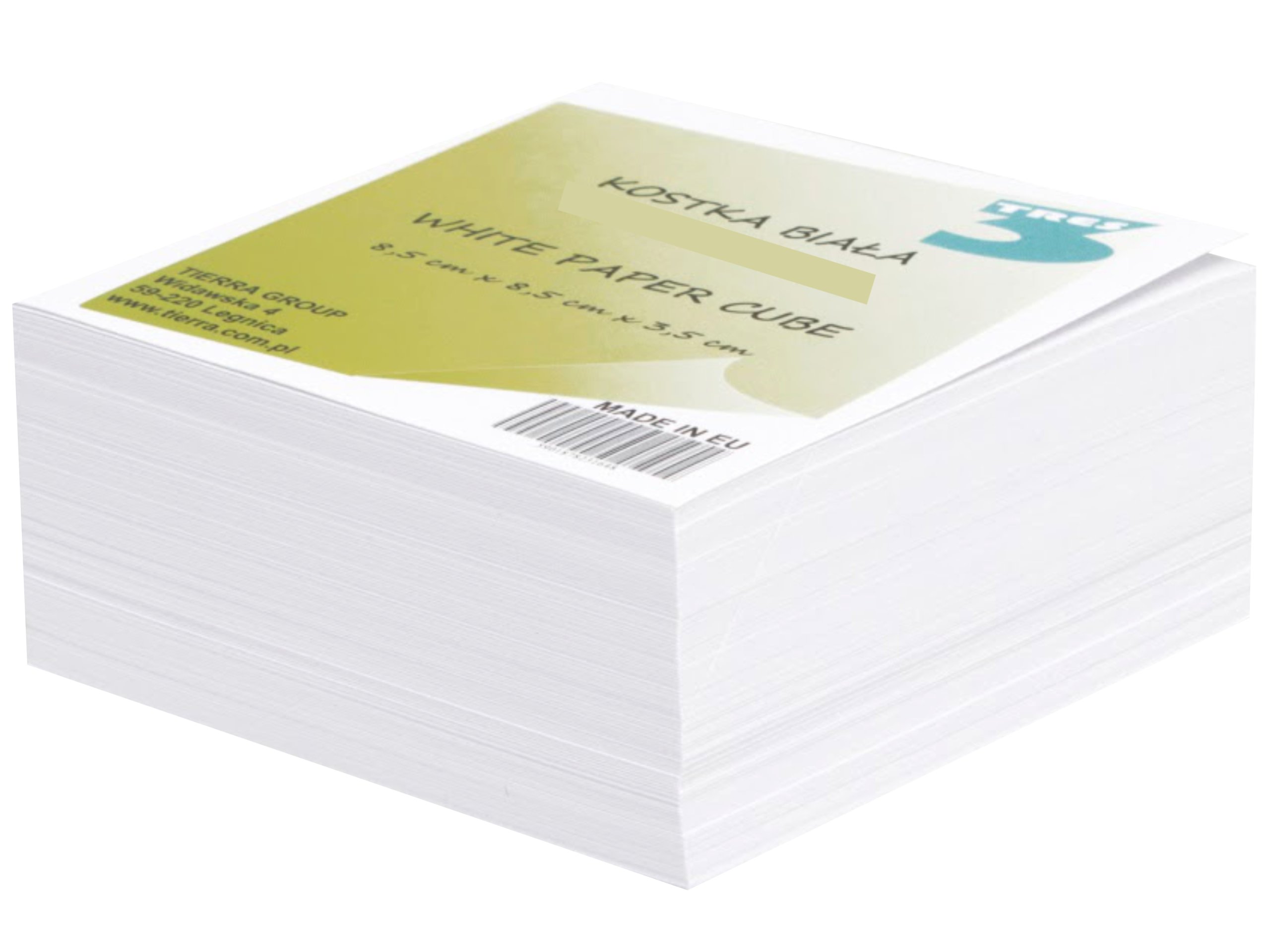 - Пейпинговый куб, белый, приклеенный с размерами 85 мм x 85 мм x 35 мм