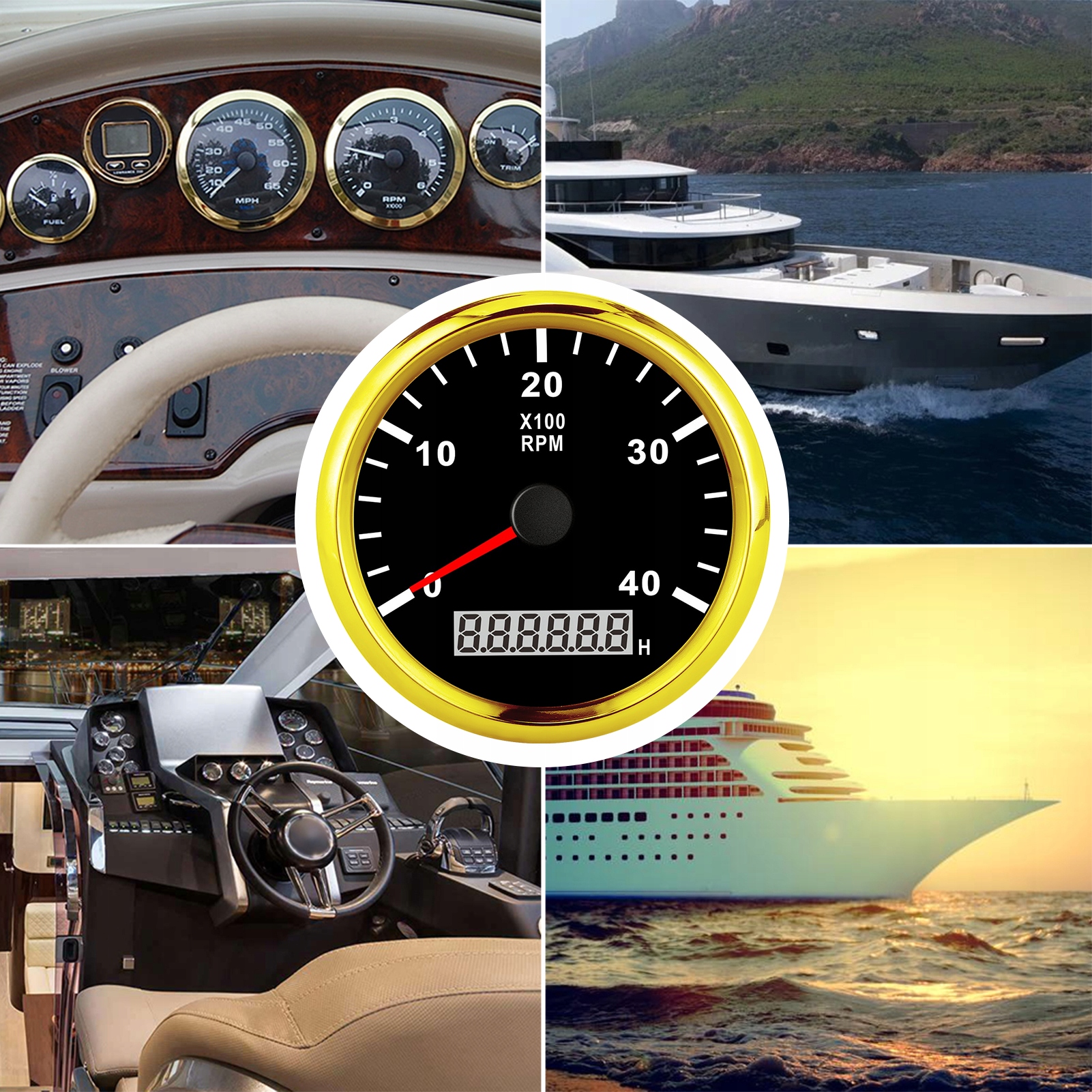 Остроконечный тахометр для лодки, 85 мм, цифровой ЖК-дисплей, 4000 об/мин, с красной подсветкой, IP67, водонепроницаемый, 12 В/24 В, черный циферблат, золотая крышка