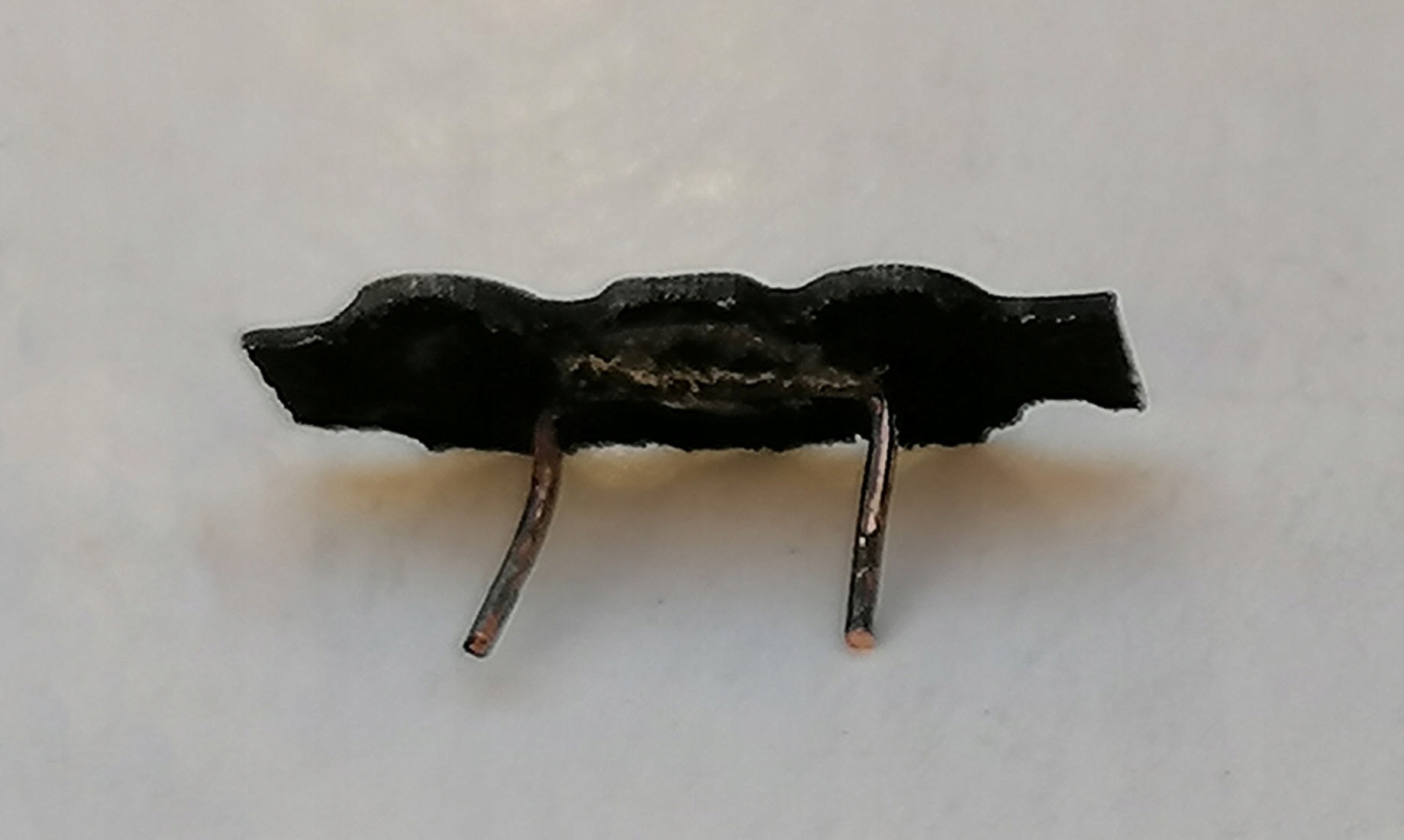 - Крепление - два гнутых металлических усика с шагом около 5 мм.