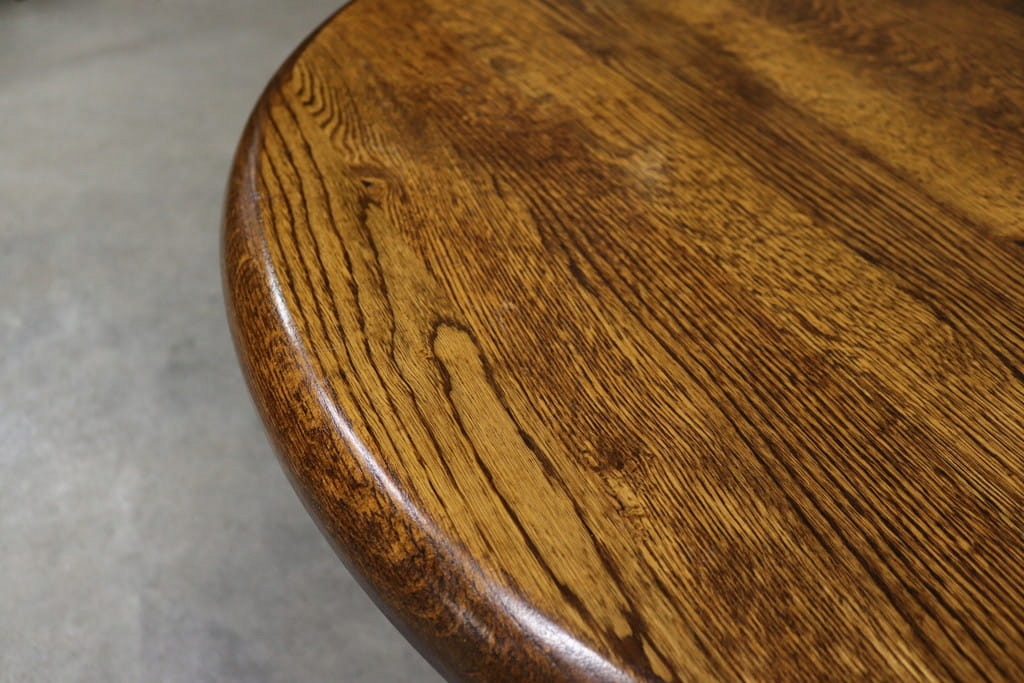 8528 okrągły solidny stolik, lita ława dębowa