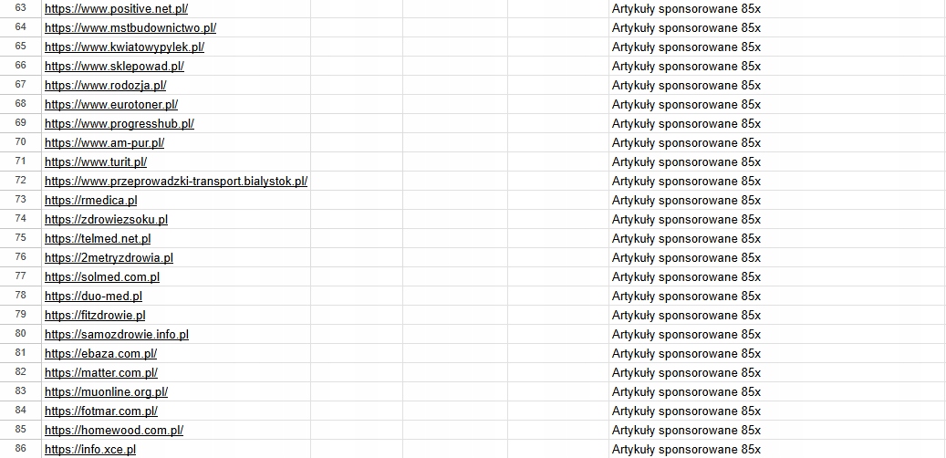 85x спонсируемые статьи - установленное позиционирование, SEO -ссылки, .edu.pl