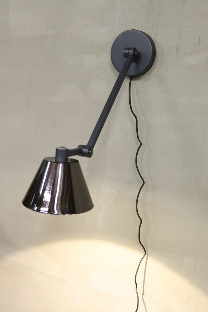 Стильная настенная лампа или промышленный персонаж - это привязка из коллекции известного голландского бренда Zuiver. Представленная лампа была сделана из металла, хранится в глубоком оттенке черного цвета. Оснащен длинным плечом с матовой отделкой, имея возможность отрегулировать угол наклона. Классический, высокий уровень абажура оснащен теплой лампочкой с теплым светом.