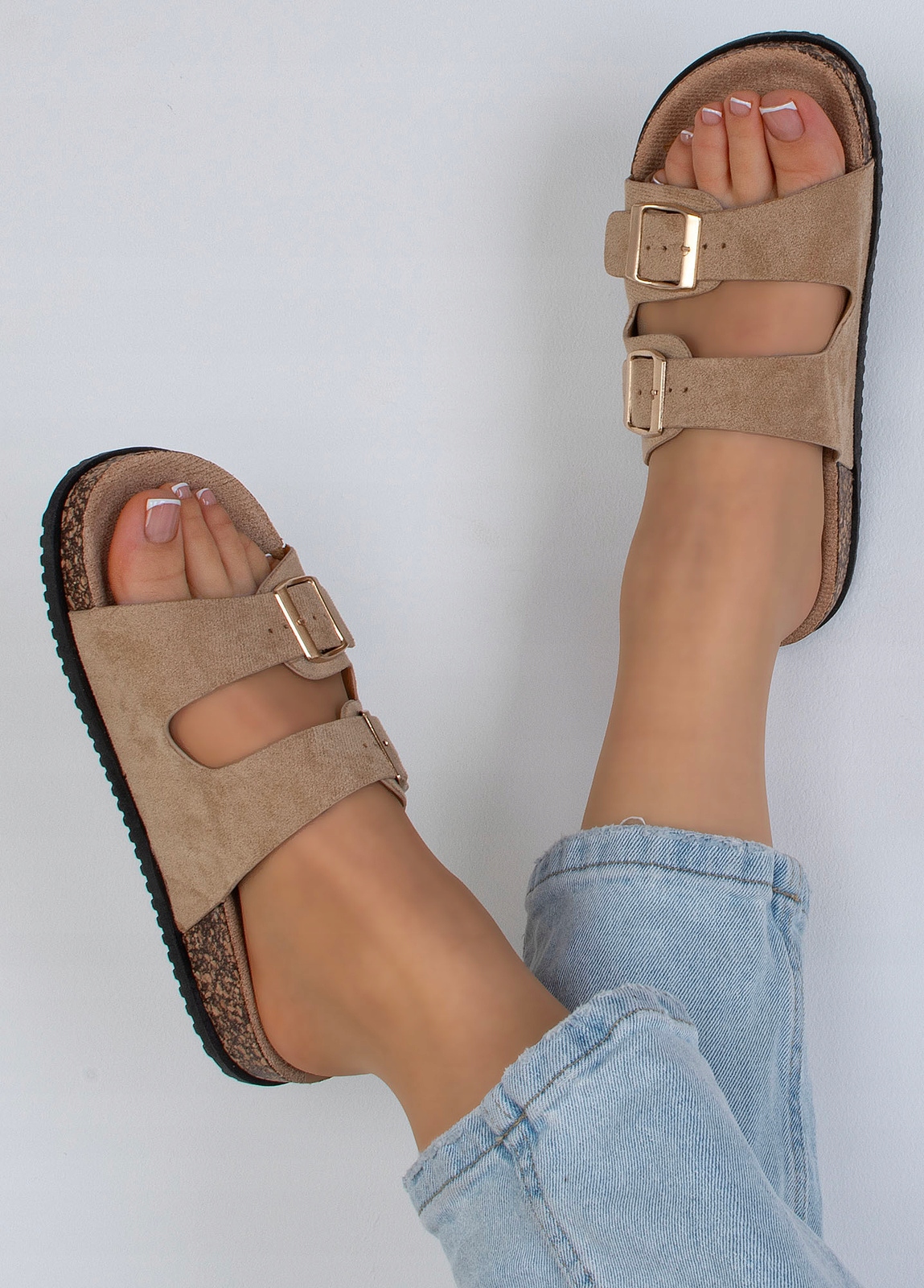 8797 бежевые шлепанцы с замшевыми пряжками 39