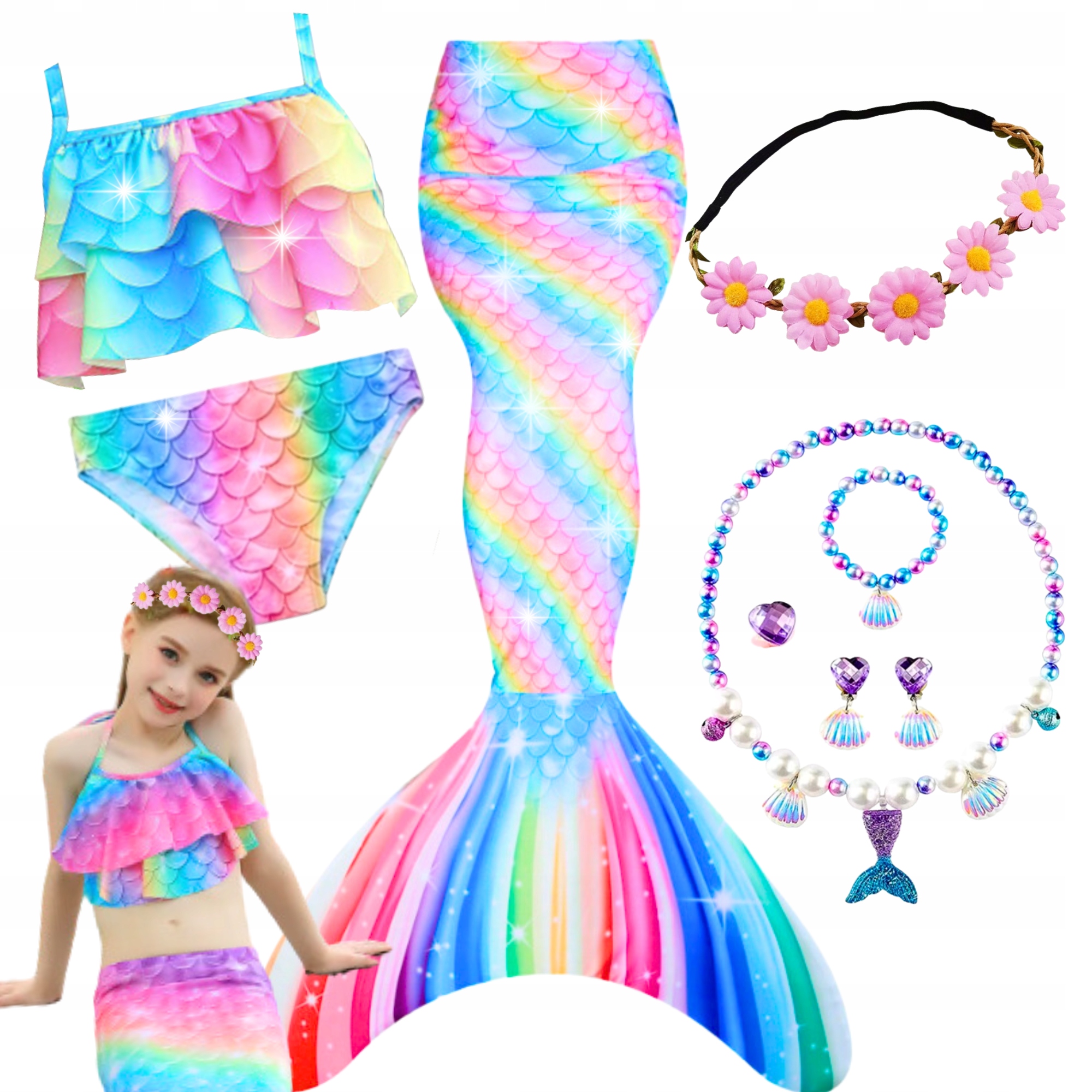 8в1 РУСАЛКА ХВІСТ КОСТЮМ РУСАЛКИ КУПАЛЬНИЙ КОСТЮМ АРІЕЛЬКИ ДЛЯ ПЛАВАННЯ 130 СМ