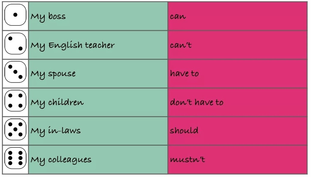 Игры с перекатыванием предложения — это классика, которую вам просто не следует знать. Эти игры могут занять учащихся на долгое время и не требуют небольшой подготовки, которая включает в себя создание таблицы со словами или структурами, которые мы хотим практиковать. Каждый последующий бросок кубика соответствует следующему элементу предложения.