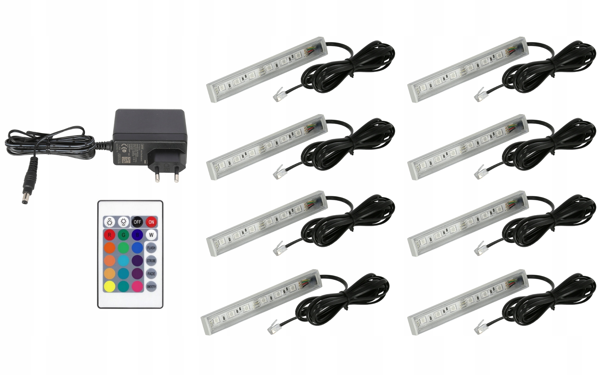 8x LED do witryn szklanych oświetlenie LED do półek gablot szafek RGB