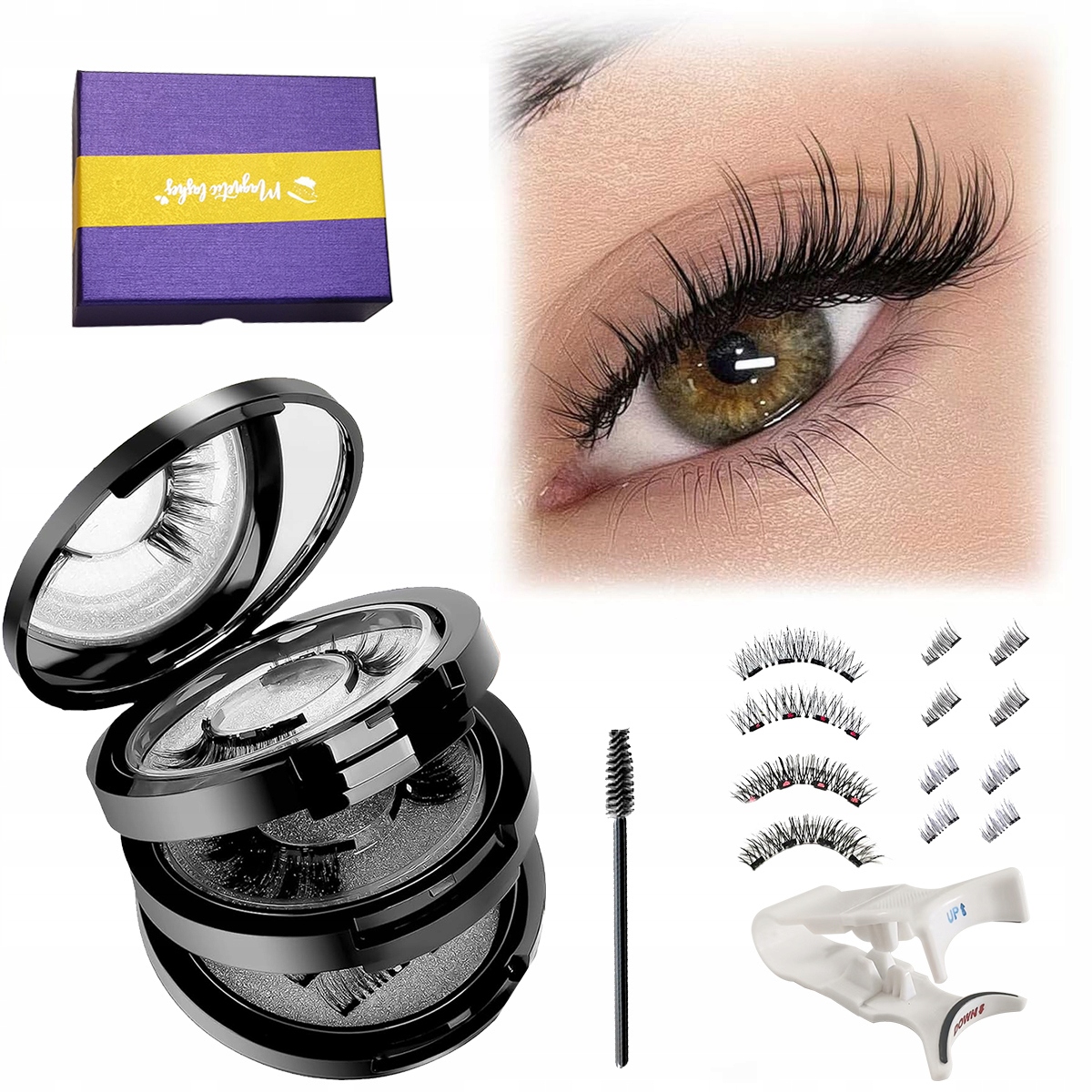 Наши магнитные ресницы без подводки — идеальное решение для людей, которые хотят избежать использования клея и подводки. Эти магнитные ресницы надежно и легко прикрепляются благодаря инновационной магнитной технологии. Попрощайтесь с ненужным клеем и наслаждайтесь легкостью нанесения благодаря нашим магнитным ресницам с помощью пинцета или аппликатора.
