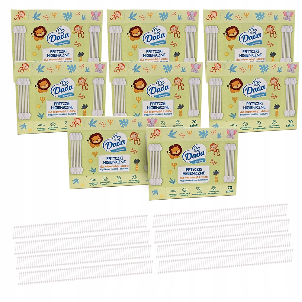 8X DADA ЕЖЕДНЕВНЫЕ НАБОРКИ ДЛЯ УШЕЙ ГИГИЕНИЧЕСКИЕ ДЛЯ ДЕТЕЙ И МЛАДЕНЦЕВ БЕЗОПАСНО 70 ШТ. = 560 ШТ.
