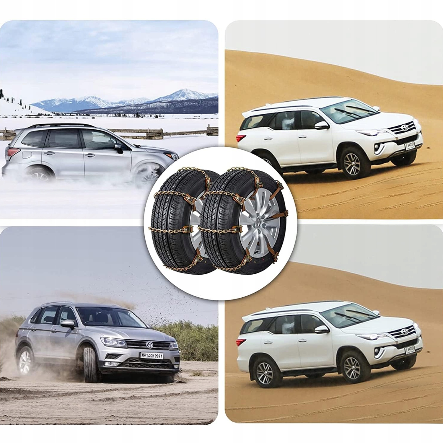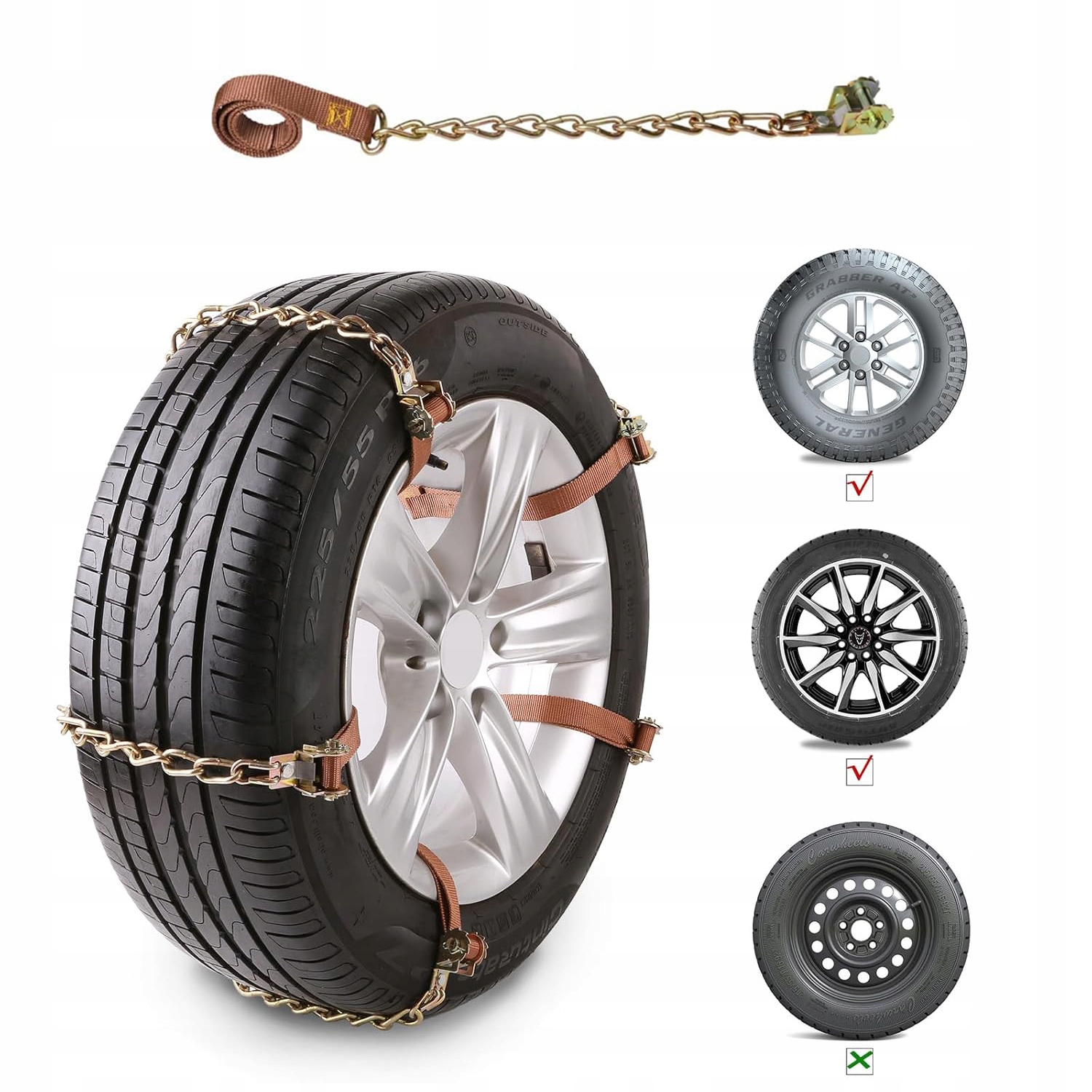- Цепи противоскольжения подходят для грузовых автомобилей, внедорожников, фургонов, легковых автомобилей и других транспортных средств общего назначения.